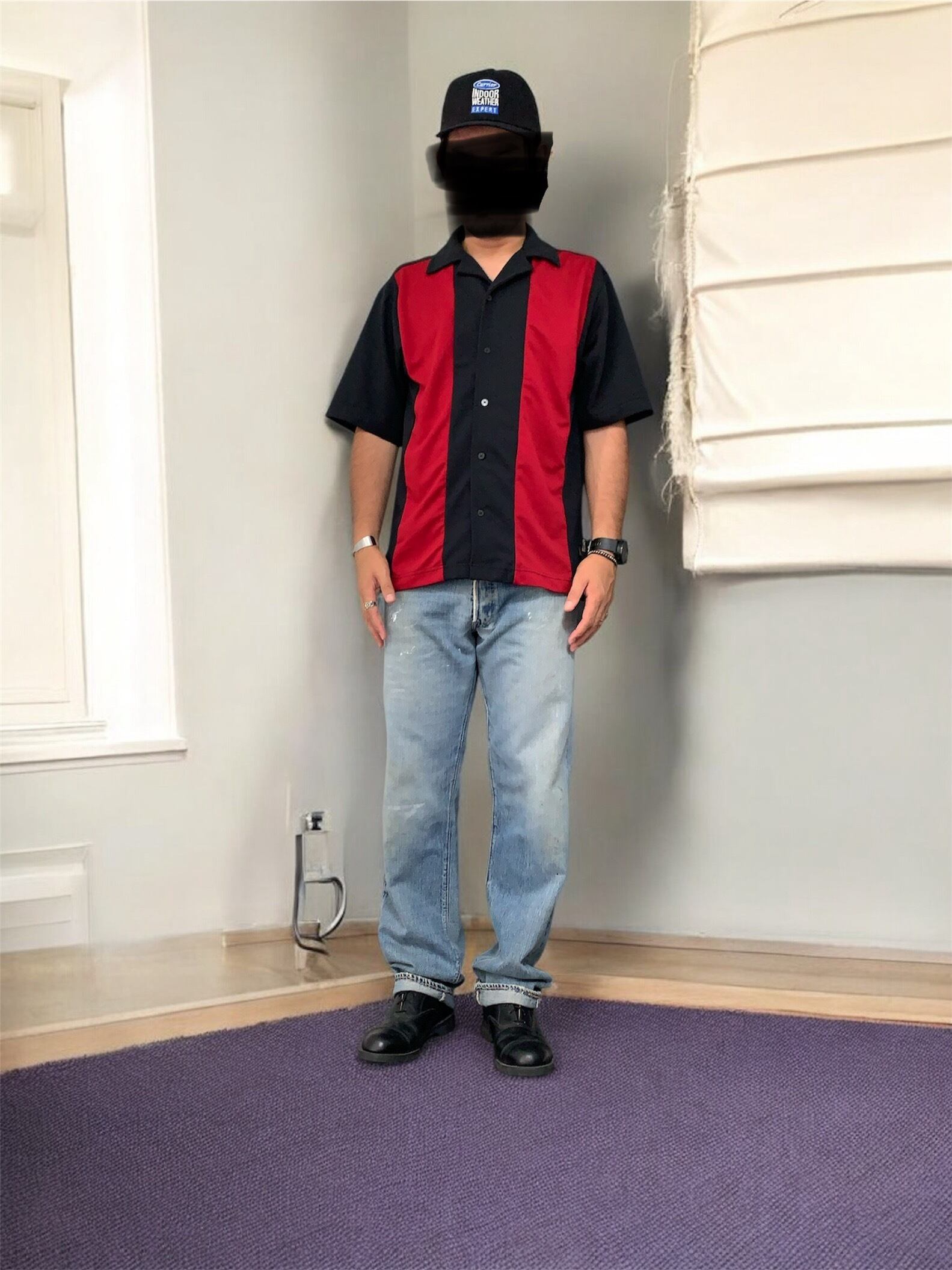 室内空調器具を専門とした運送会社がロゴに入っていて、ブラックボディにブルーとホワイトの配色のバランスが良く、コーデの中でキャップで外すときに最適なアイテムかなと思います。