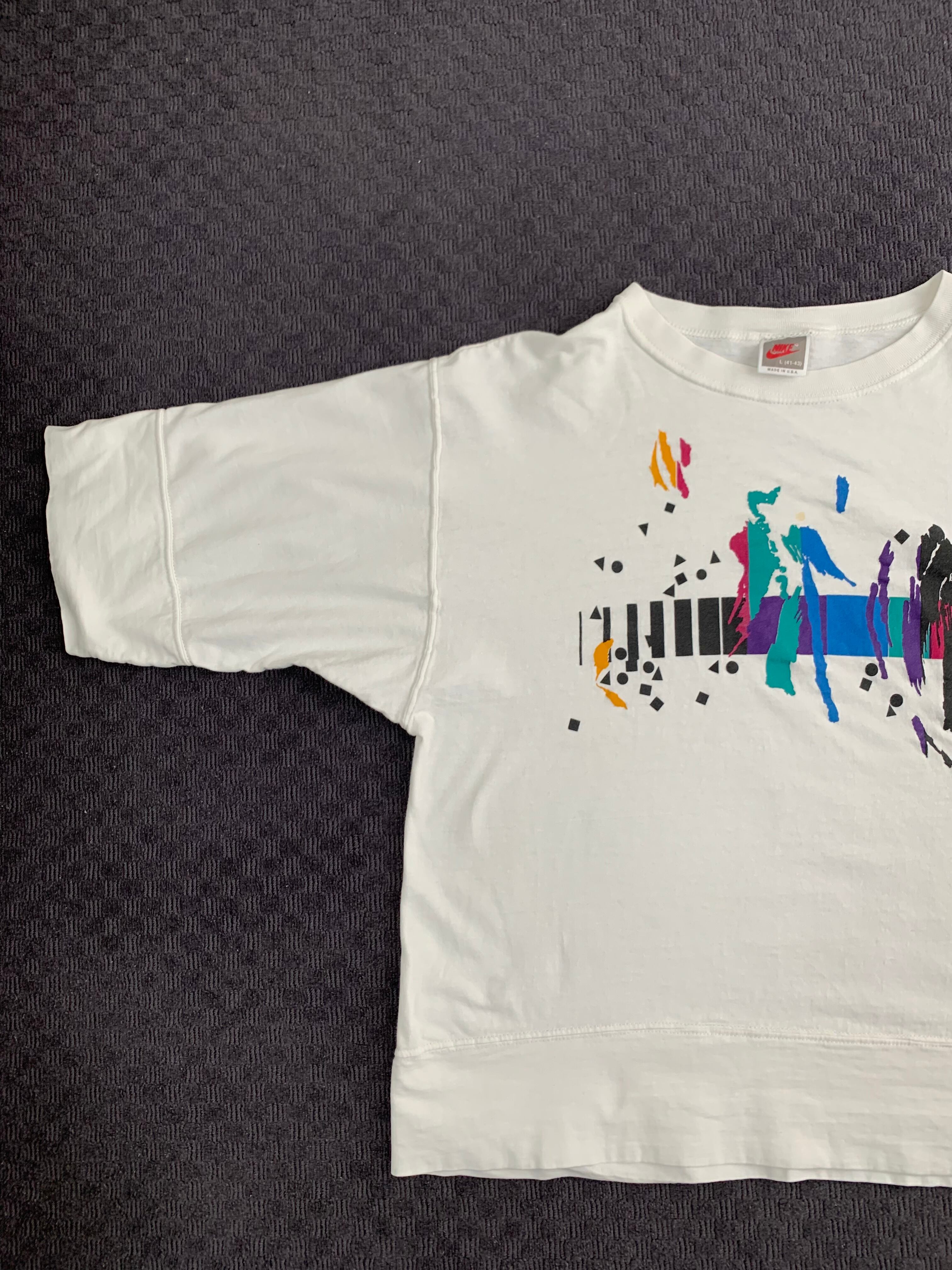 プリントも何を表現しているのか、よくわからないあたりが面白いですし、袖と裾の大きめのリブも現代では見られないデザインとなっています。