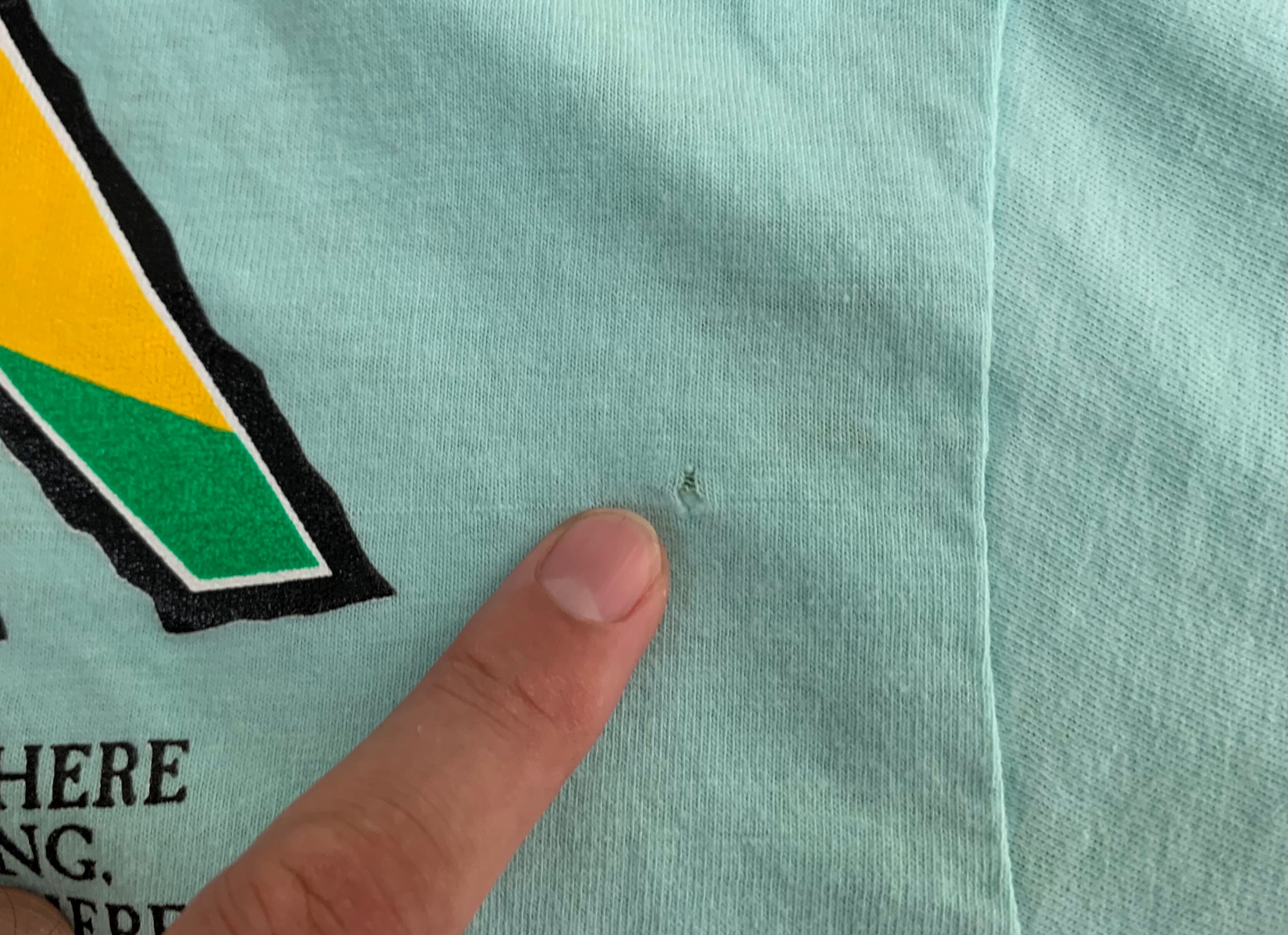 見立ちにくいですが、ダメージがあることと、肩腕に色落ちがあります。(写真参考)
