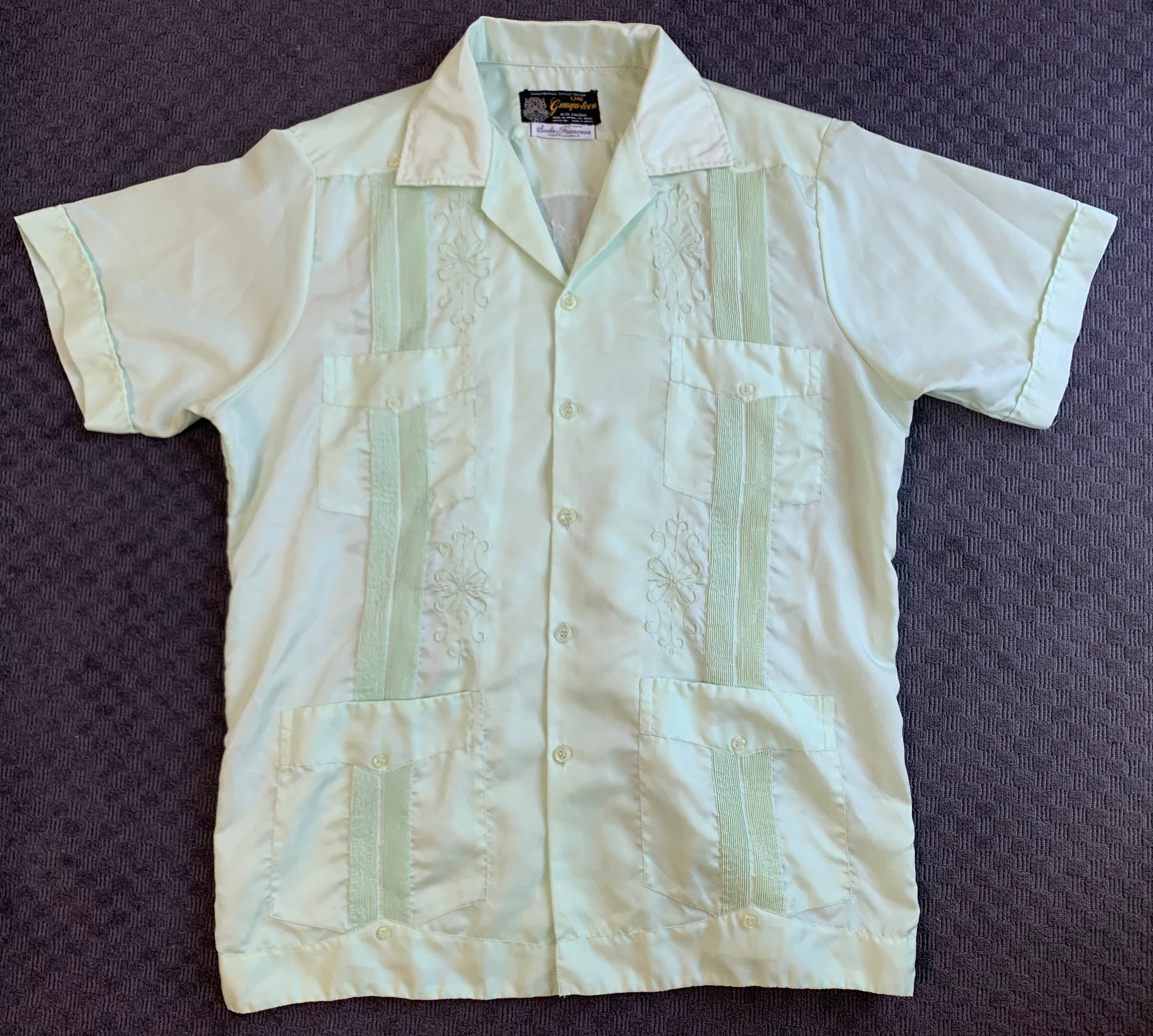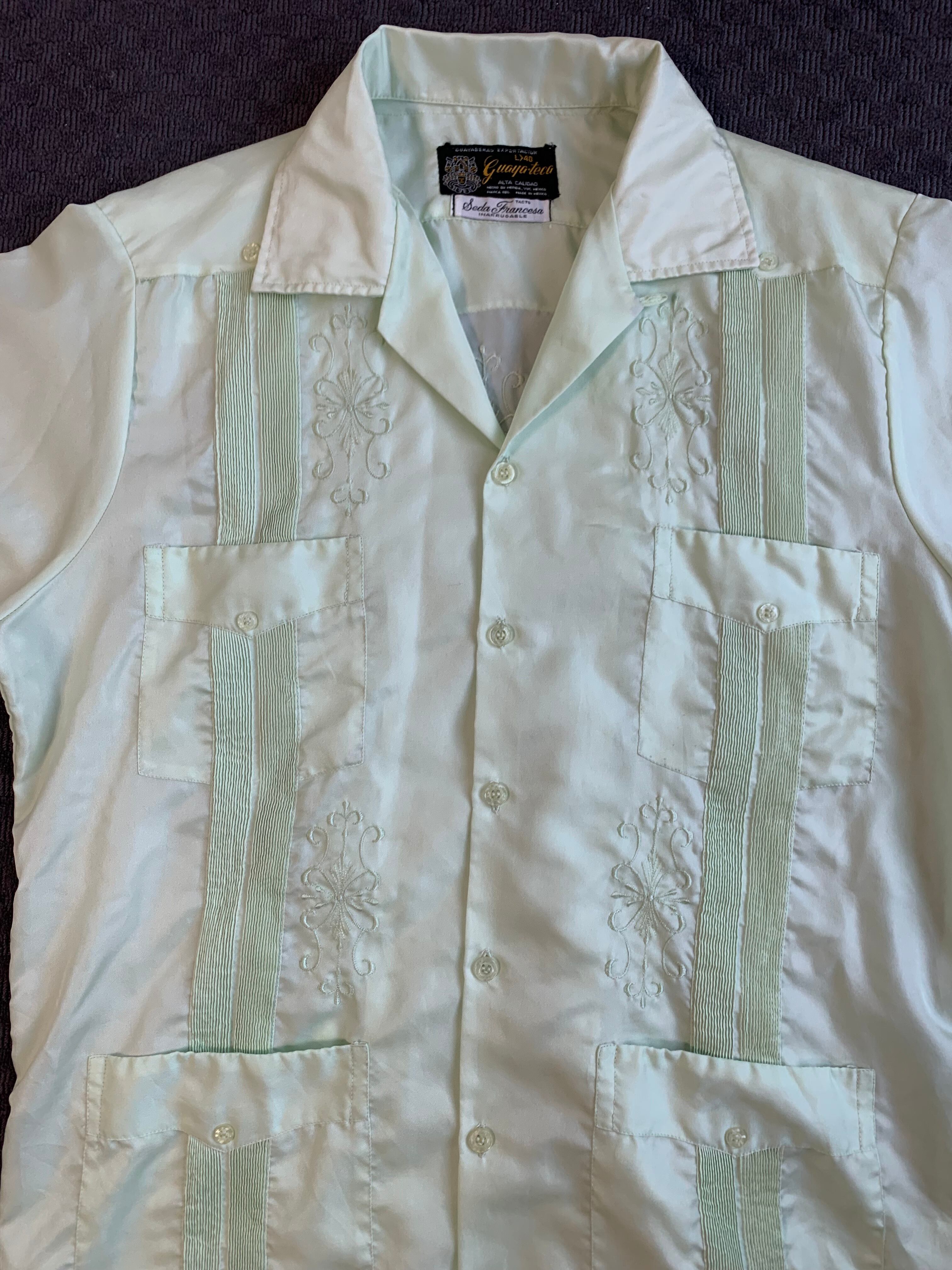 80s“guaya teca” cuban shirt guayabera open collar