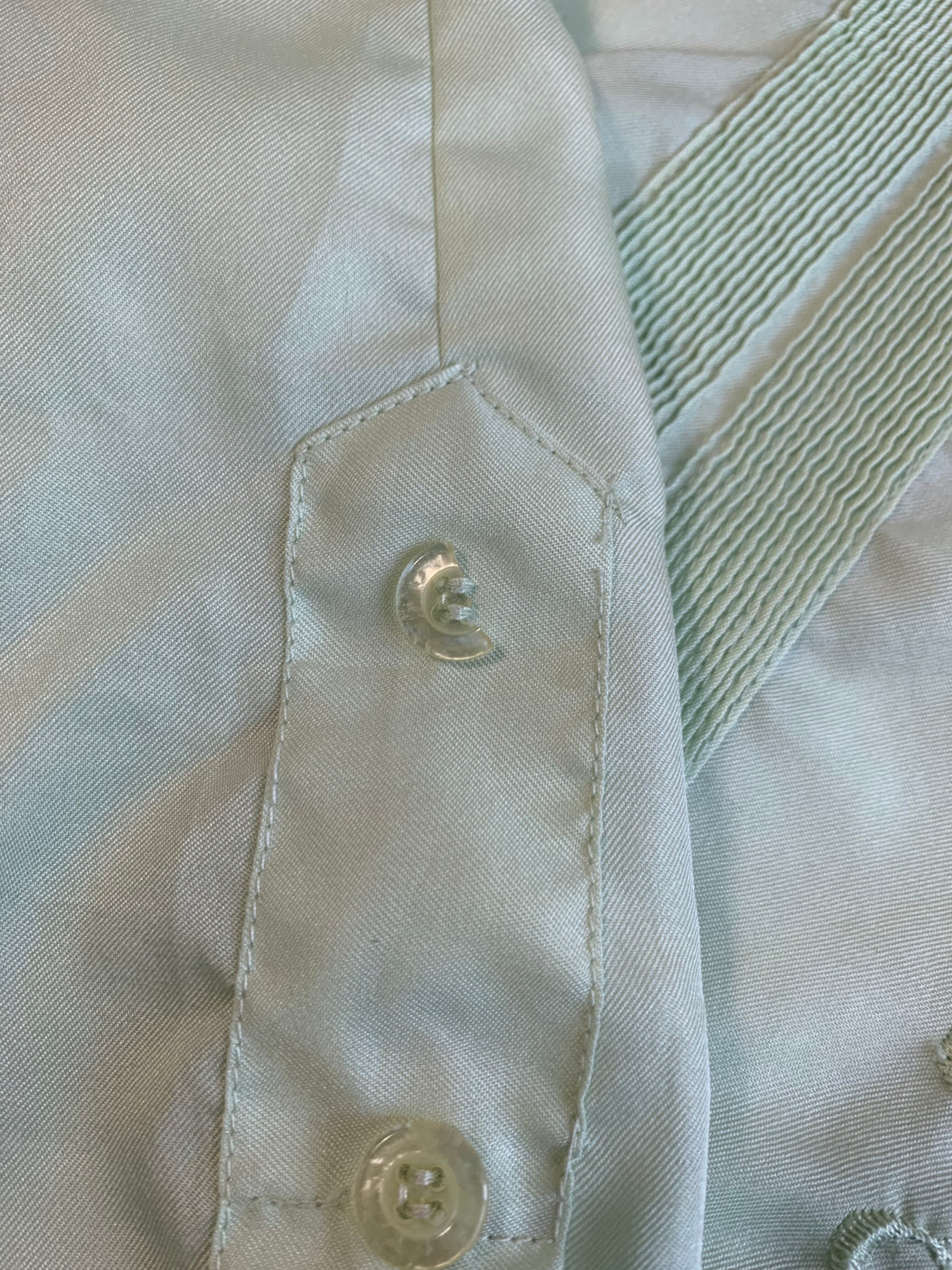 薄いグリーンのカラーで、さらりとした生地は、暑い日にピッタリの1枚です。