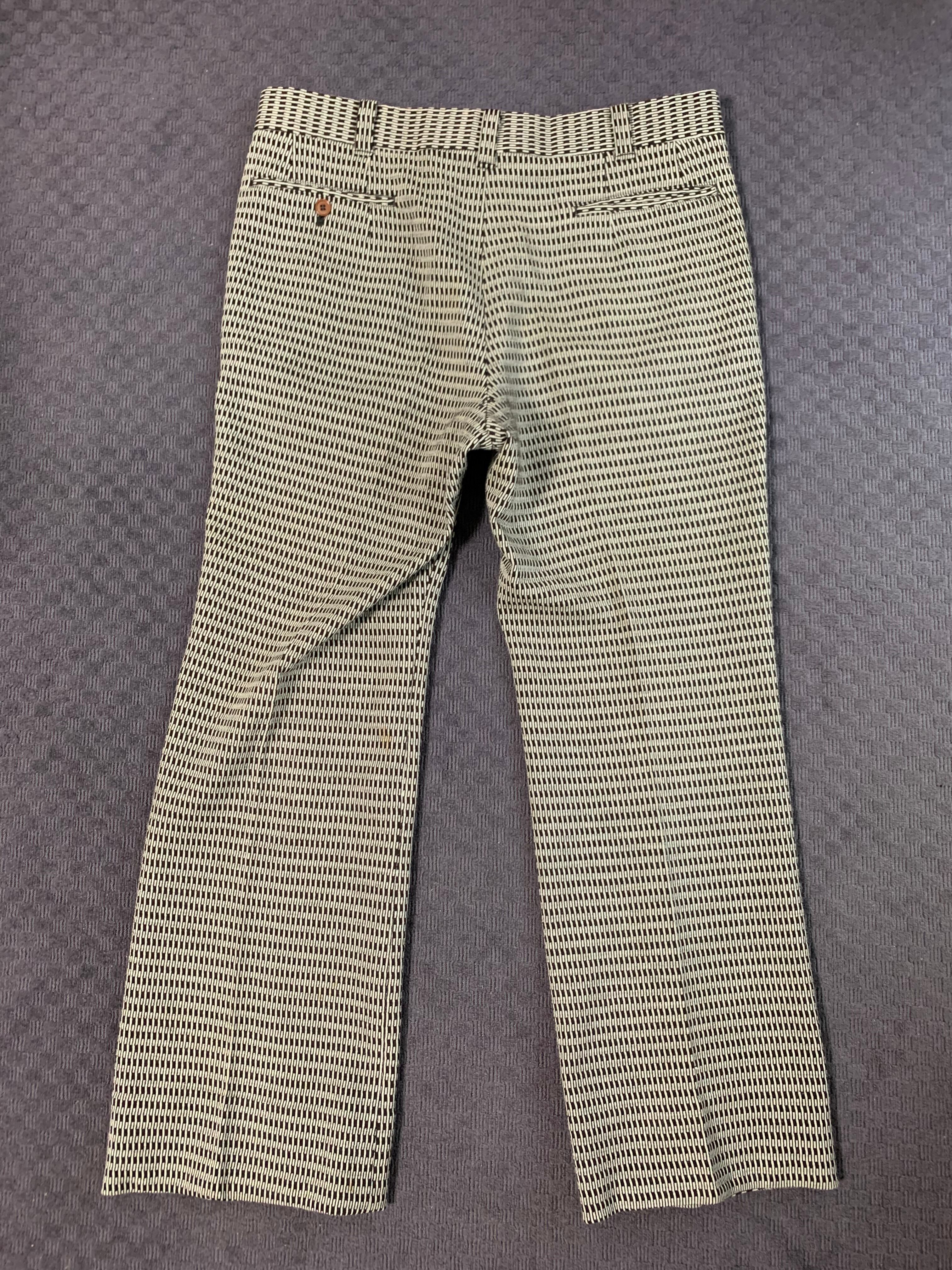 フォルムも70年代特有の、裾に向かうにつれて広がる、フレアパンツとなっています。