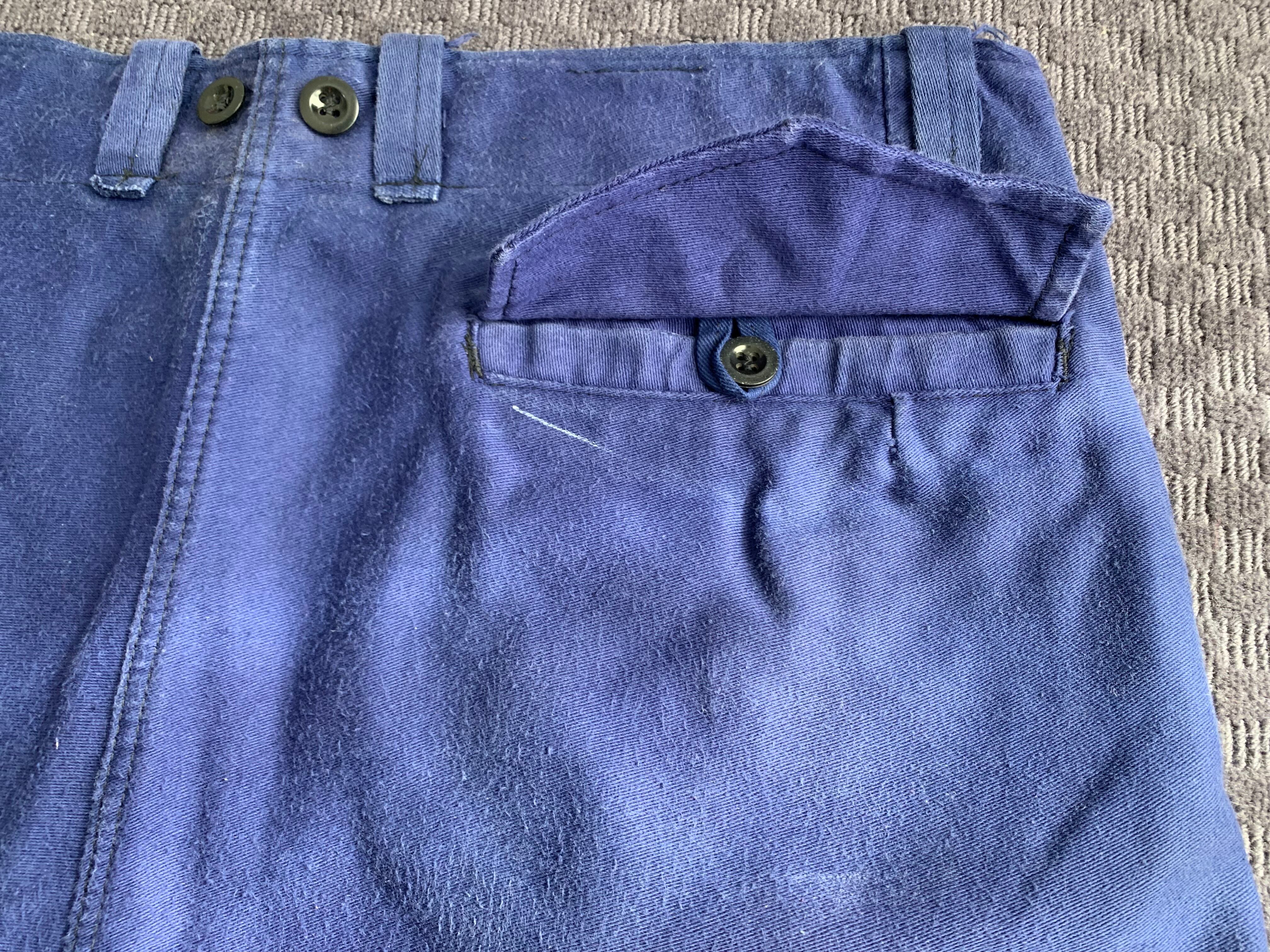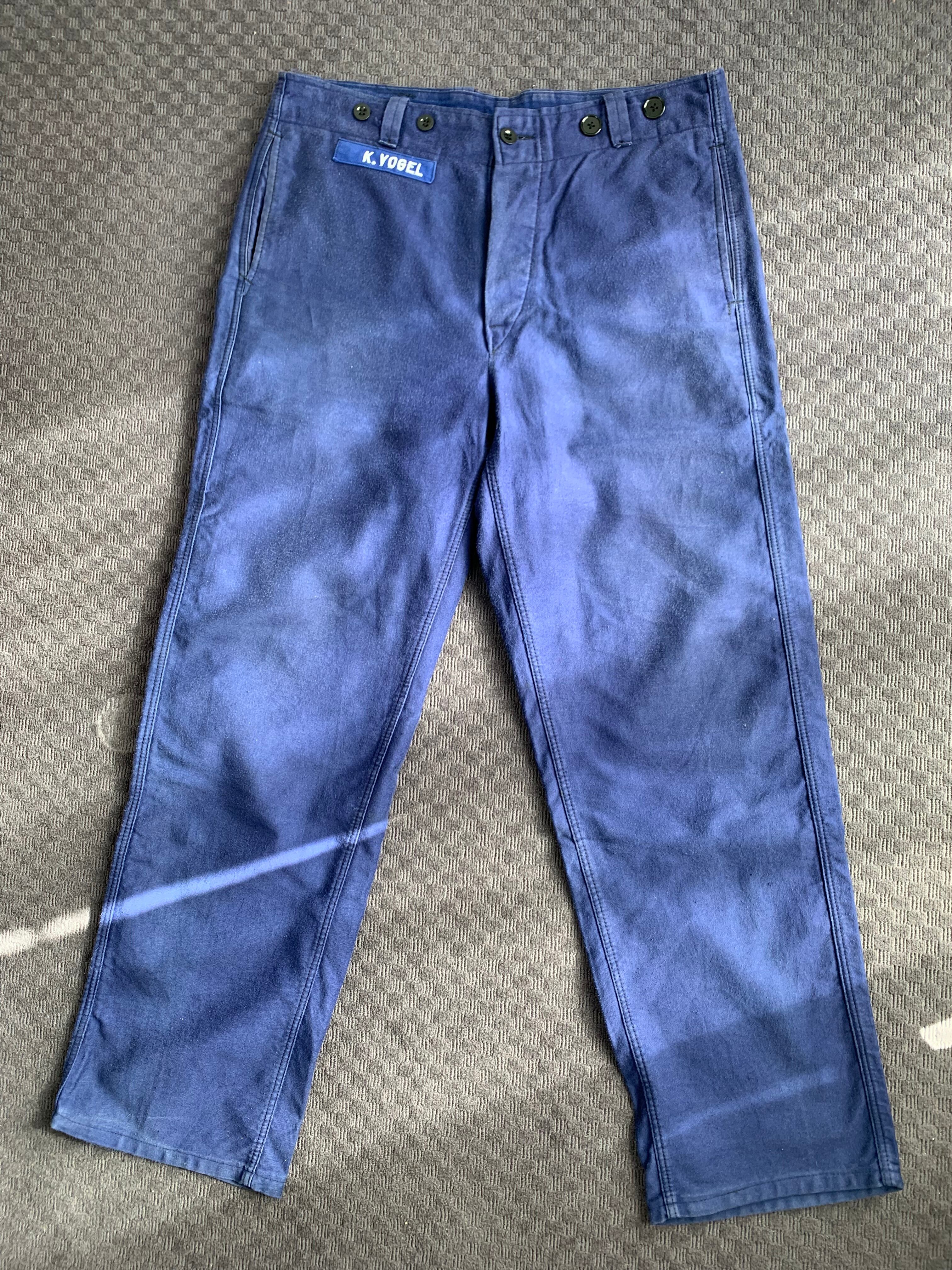 ブルーのワークパンツのため、フレンチワークっぽさがありますが、PTKのジャーマンワークのパンツとなります。