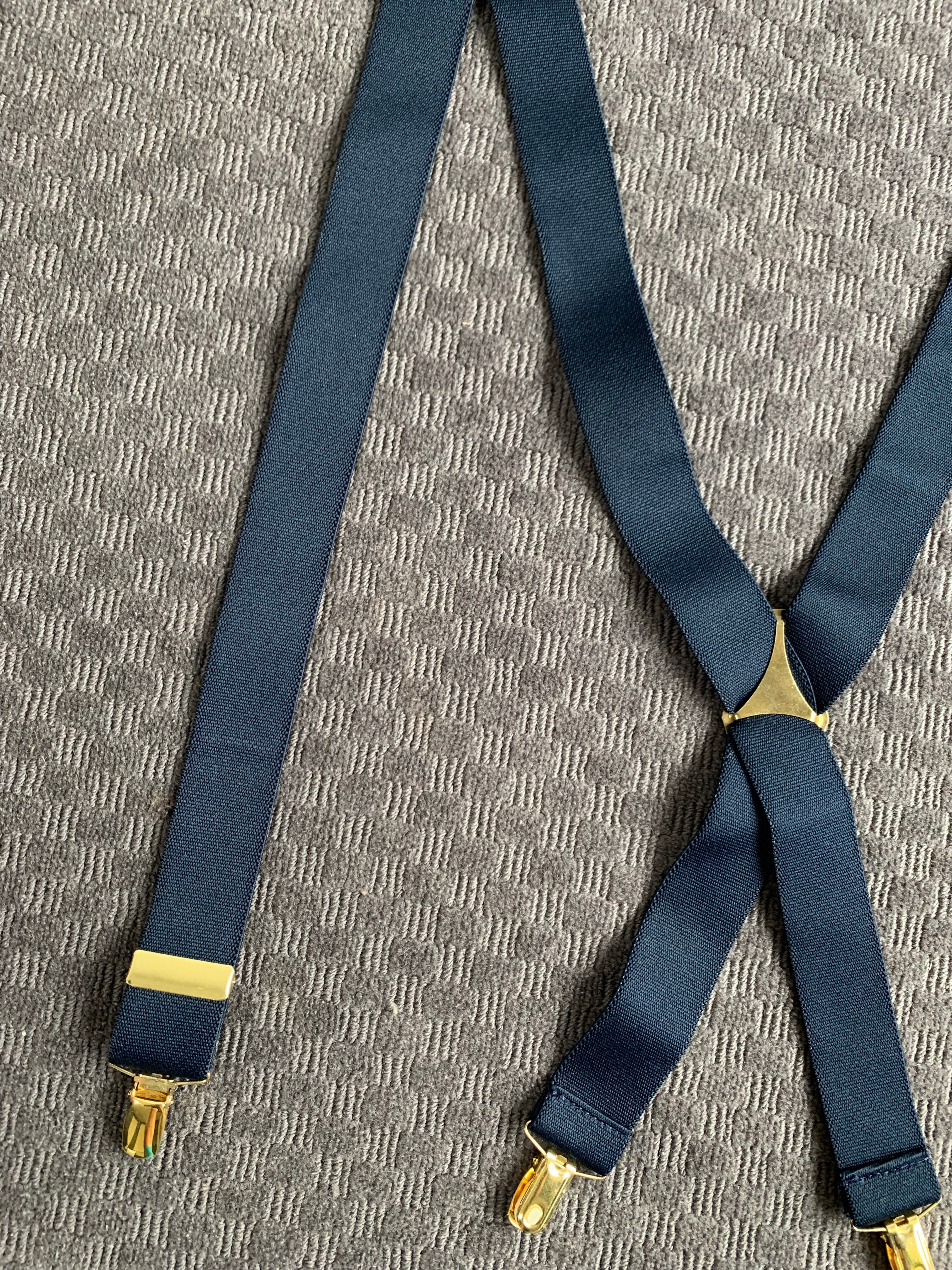 clip suspenders navy gold pattern