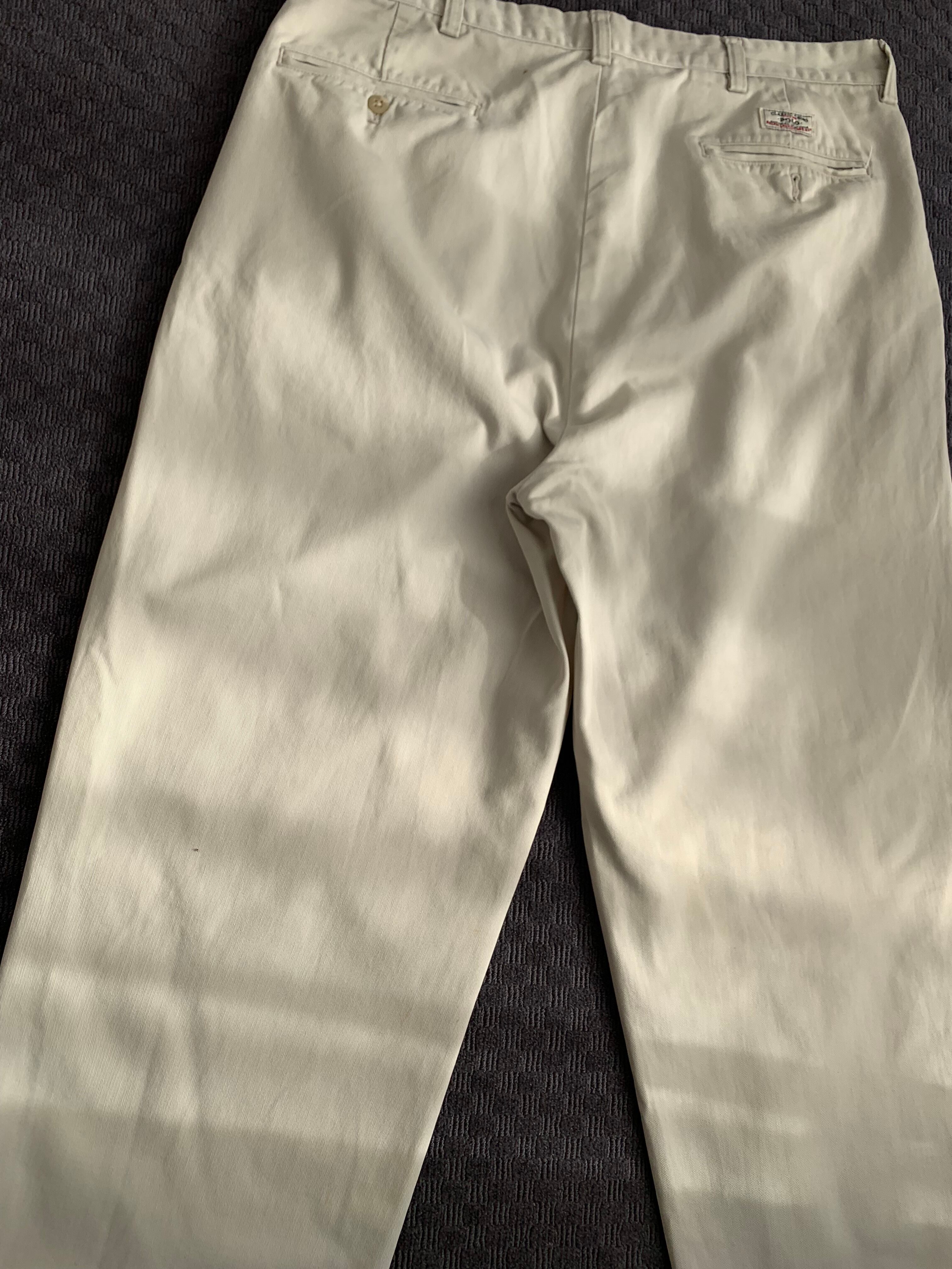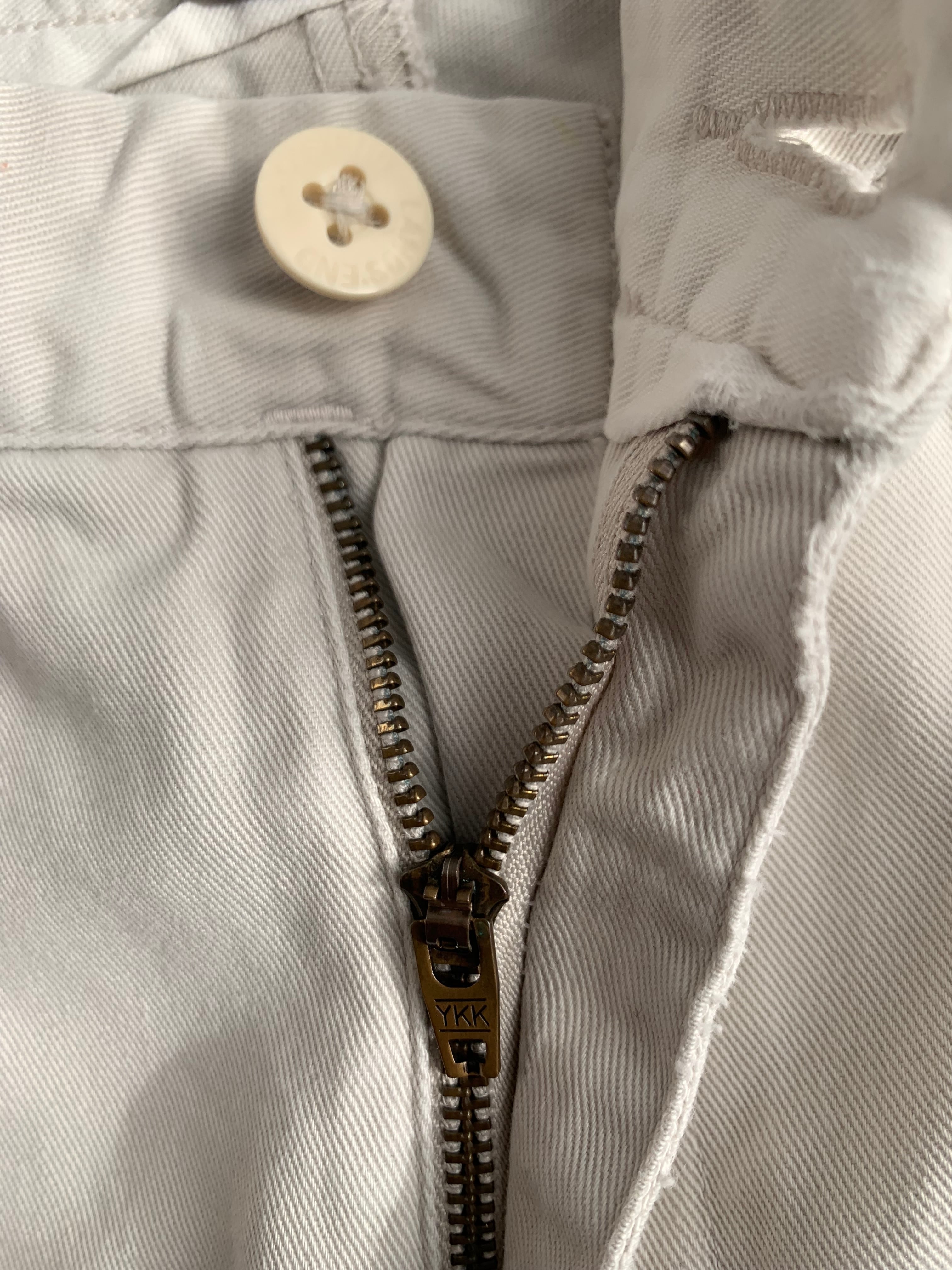 90年代のポロチノ特有のワイドシルエットに、ホワイトカラーという一見綺麗めなパンツかと思いきや、白のペインターパンツのように、ガシガシに汚していなたい感じで、わざとペンキを飛ばしても良いのではないか、という感じに履きこなせていただきたいです。