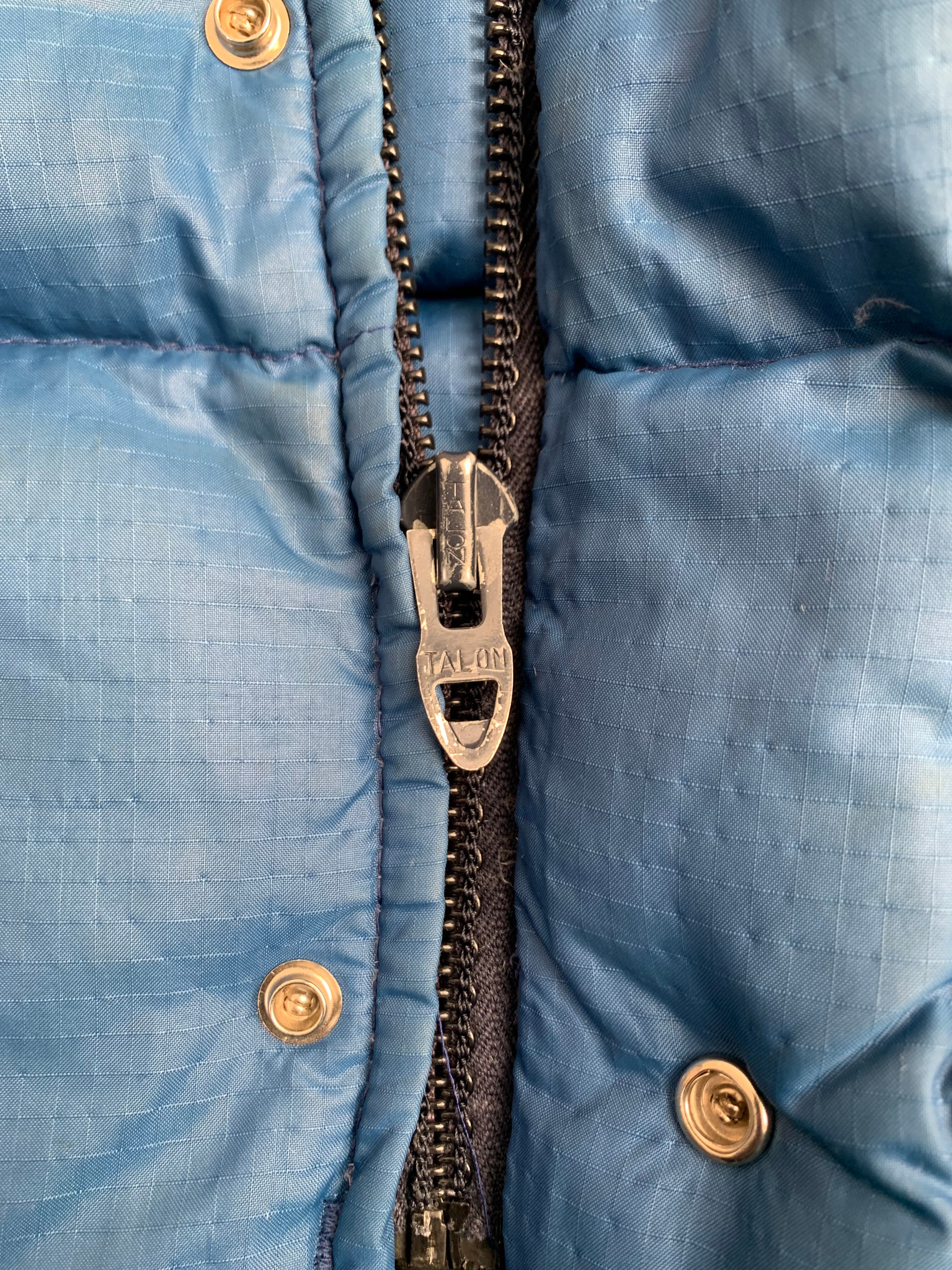 ジップは、タロンジップで、裾から少し上でジップを止めるデザインになっています。