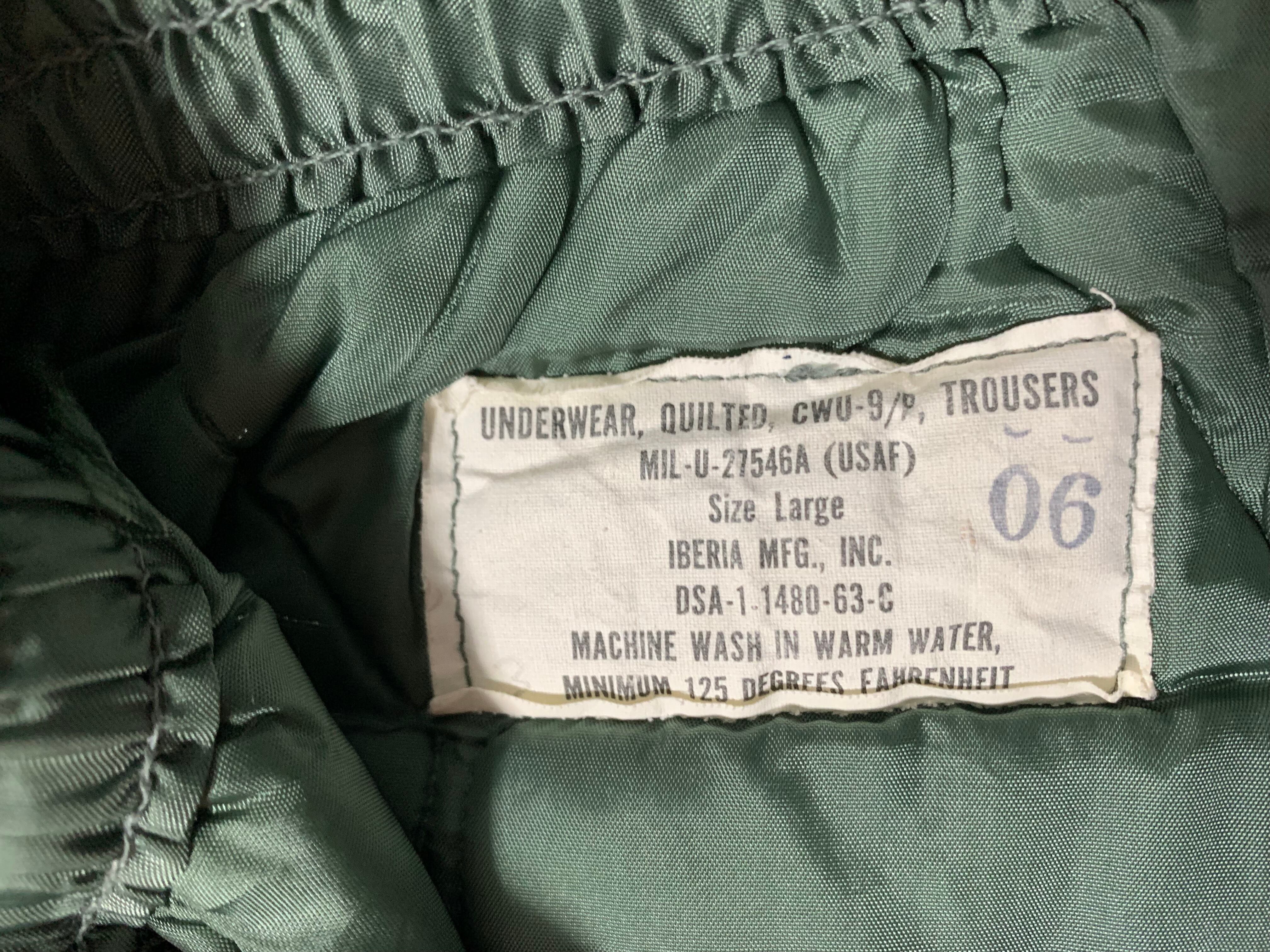 USエアフォースのCWU-9/Pキルティングライナーパンツ。