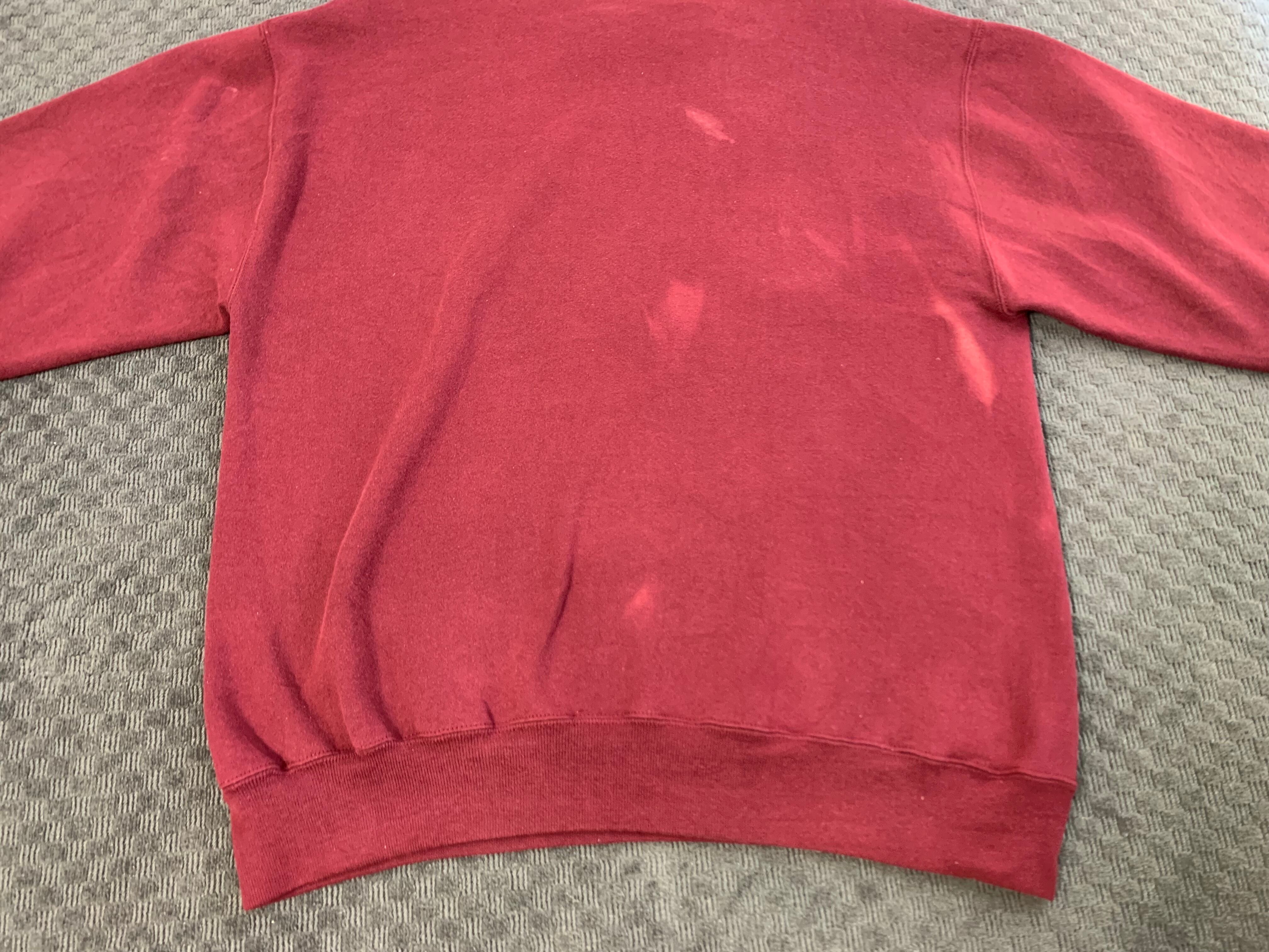 バーガンディのようなレッドで、なんと言っても、このスウェットの特徴は、まばらにある白くフェードした模様です。