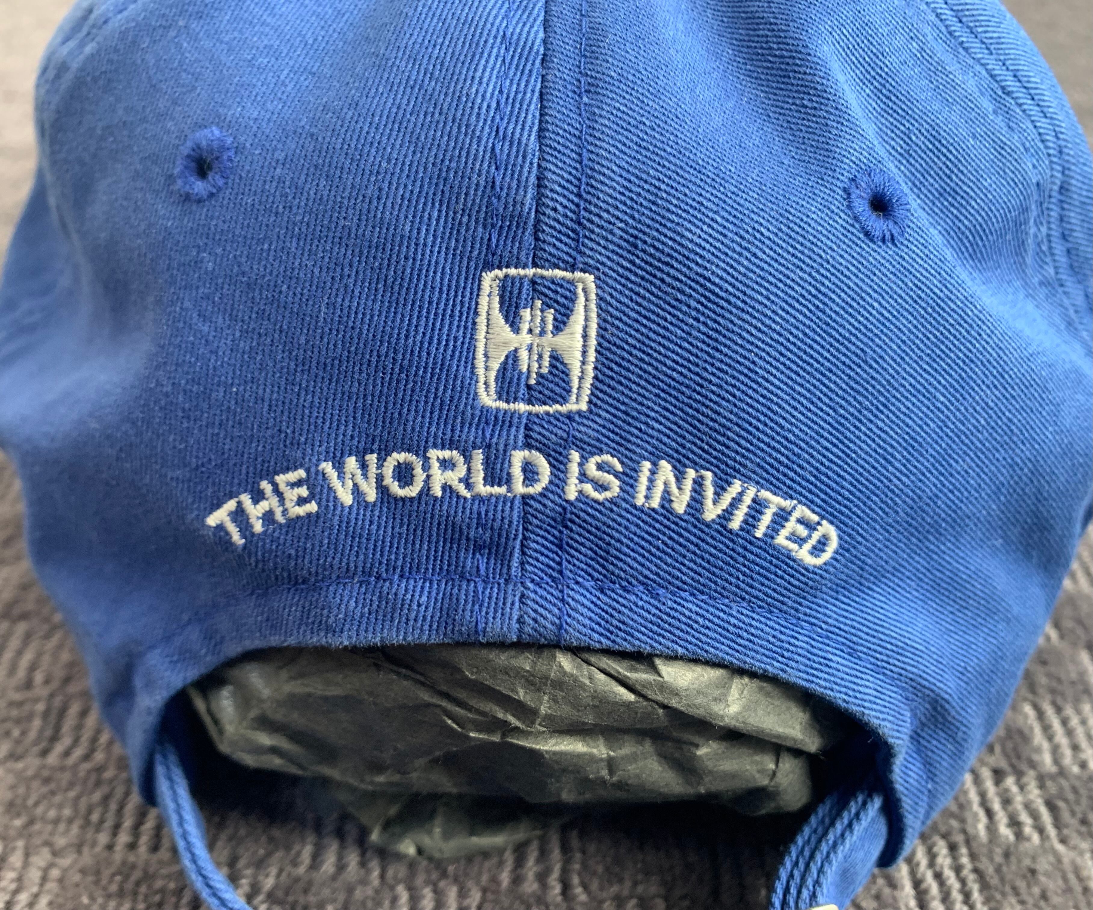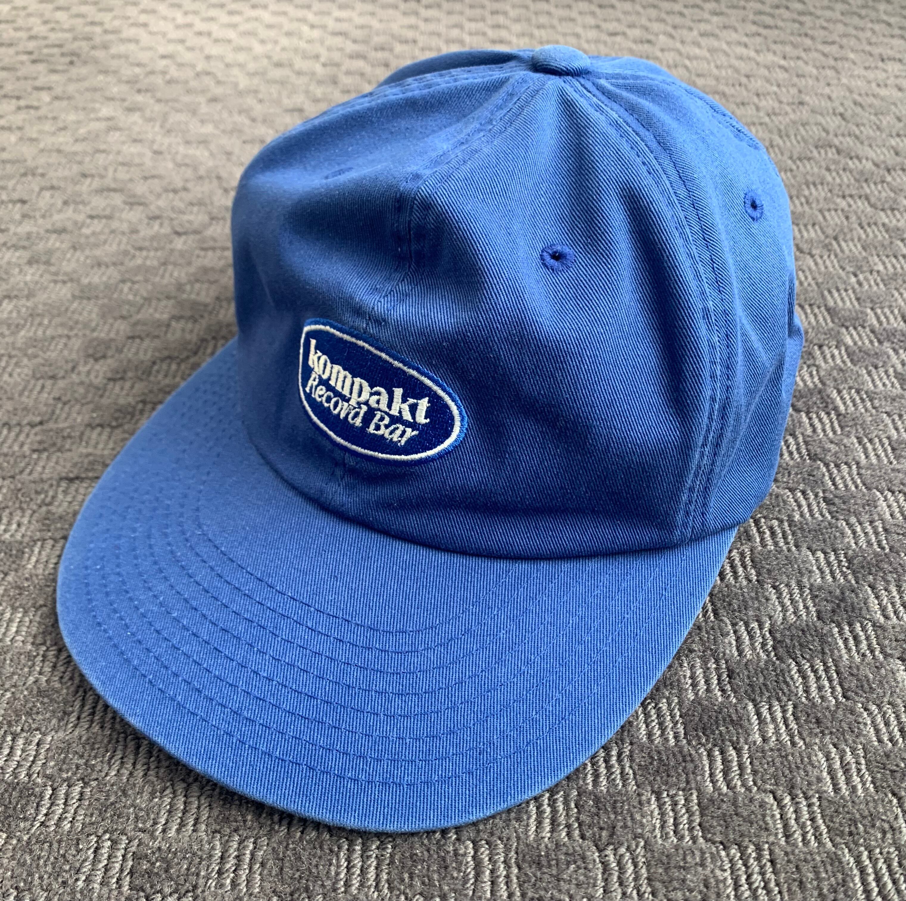 オーバルロゴが特徴のブルーの6パネルキャップ。バックストラップ式です。