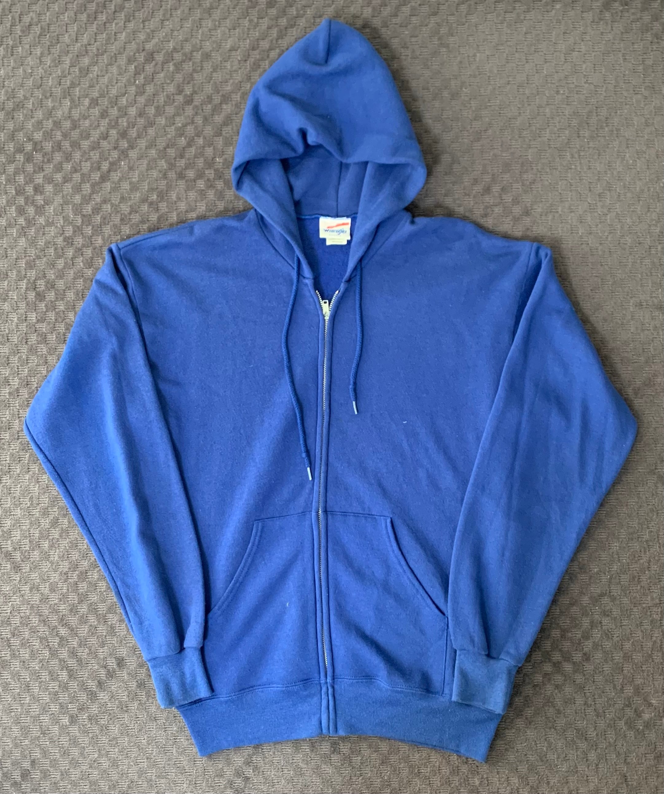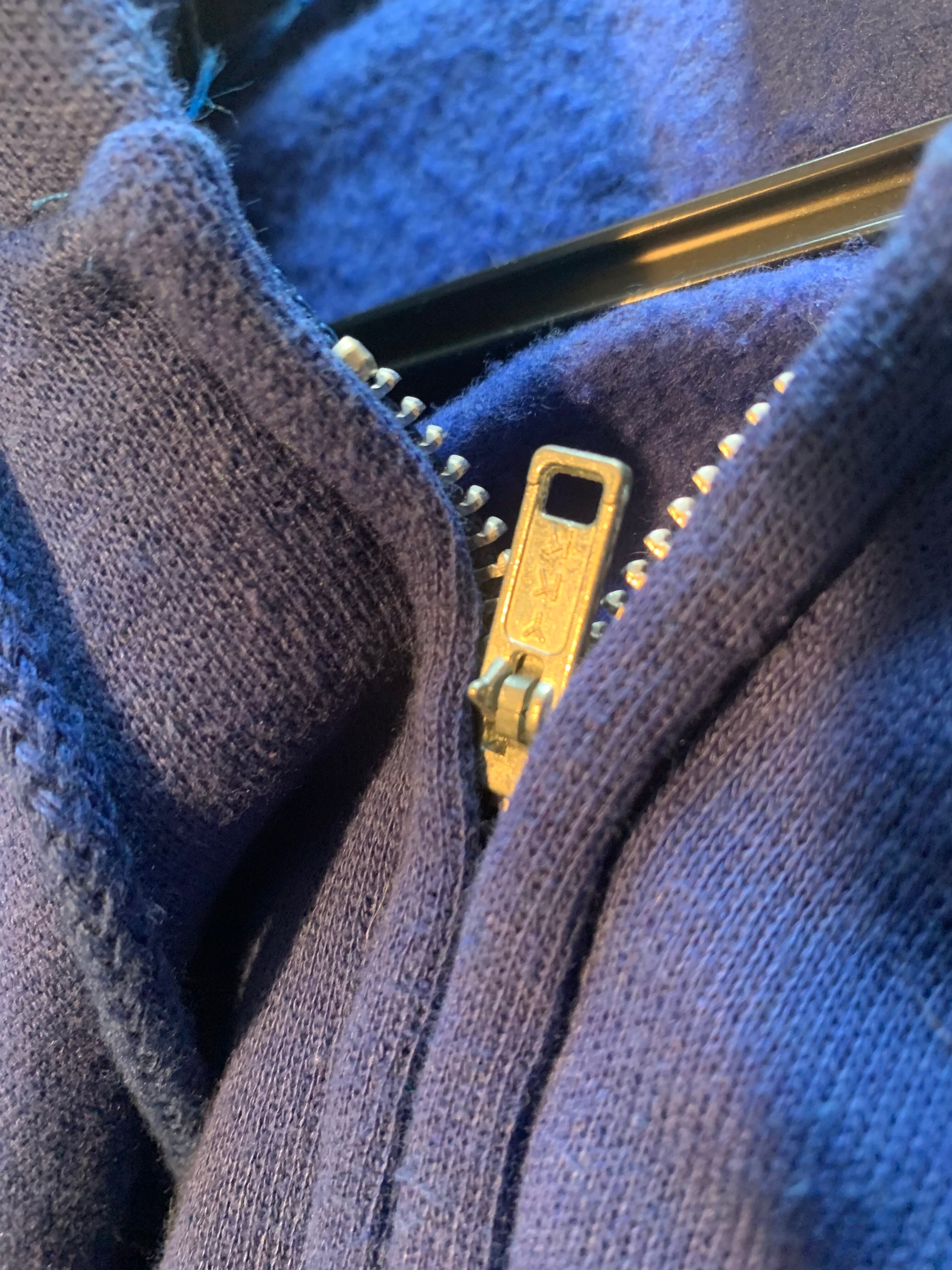 90年代アメ製らしい、フードの先端がとんがっている形、生地の褪色やへたり具合、YKKの片爪アルミジップなど、ファッションの中に外しや緩さに使いやすいアイテムです。