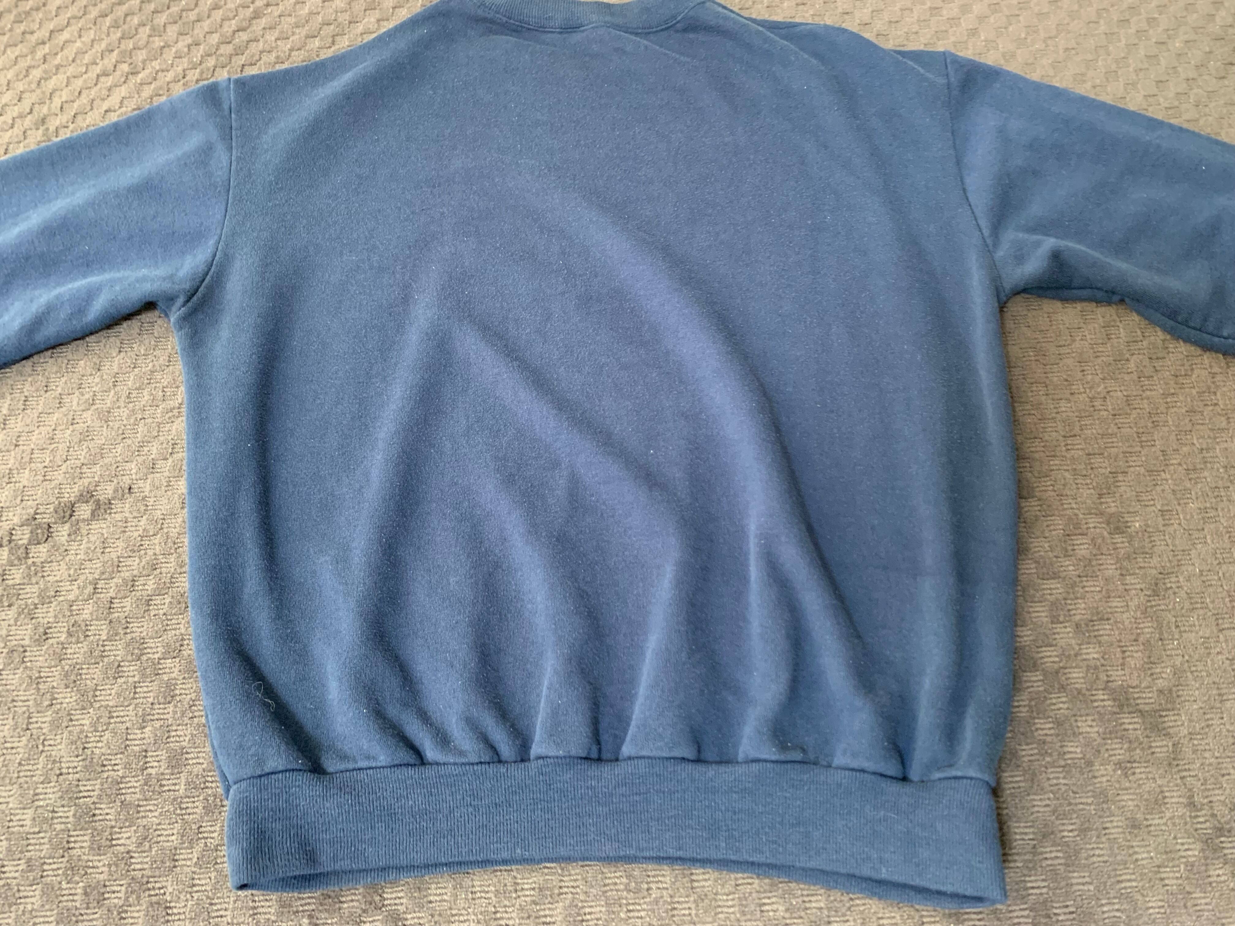 フロッキープリントや生地の褪色具合から、ヴィンテージ感が出てきているスウェットとなります。