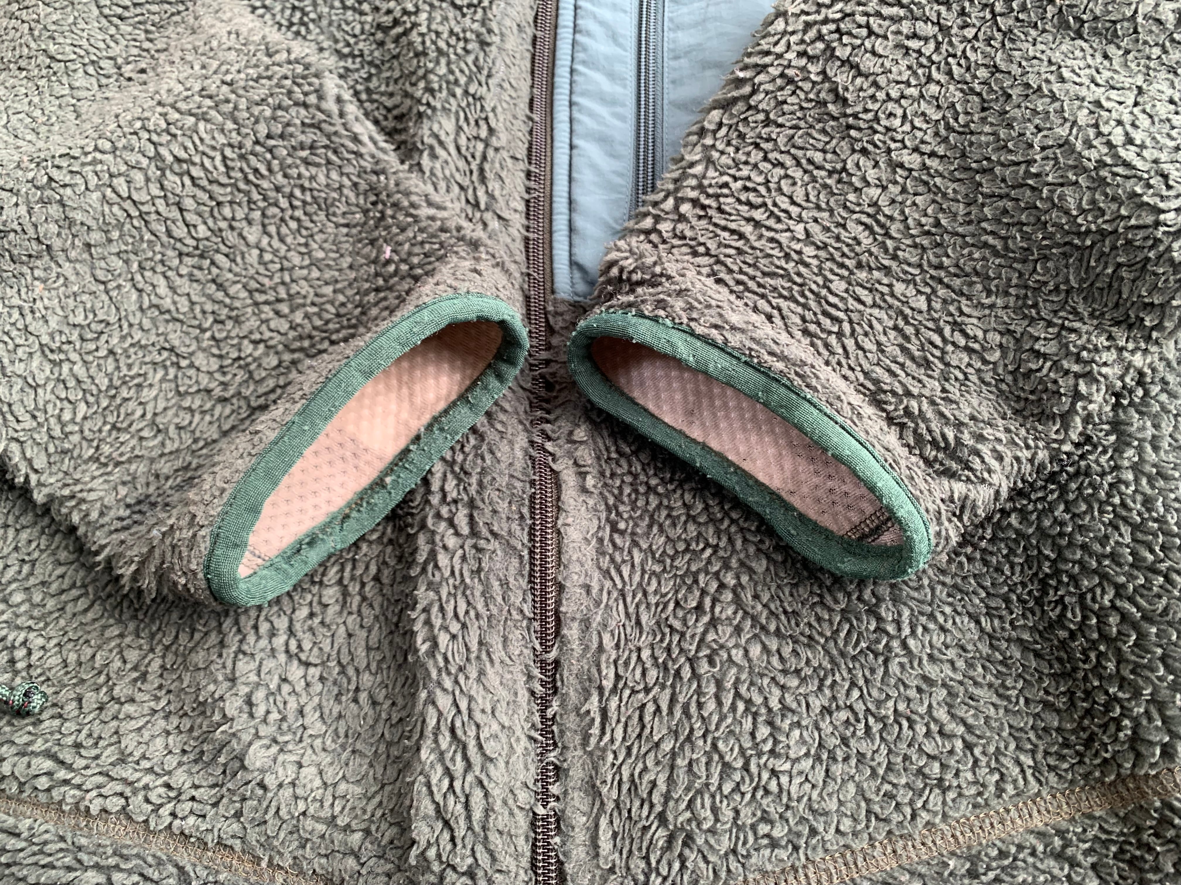 状態は、肘裏に少し潰れと、全体的にフリースに潰れはありますが、ライニングも含めて破れや穴は無く比較的良い状態を保っています。