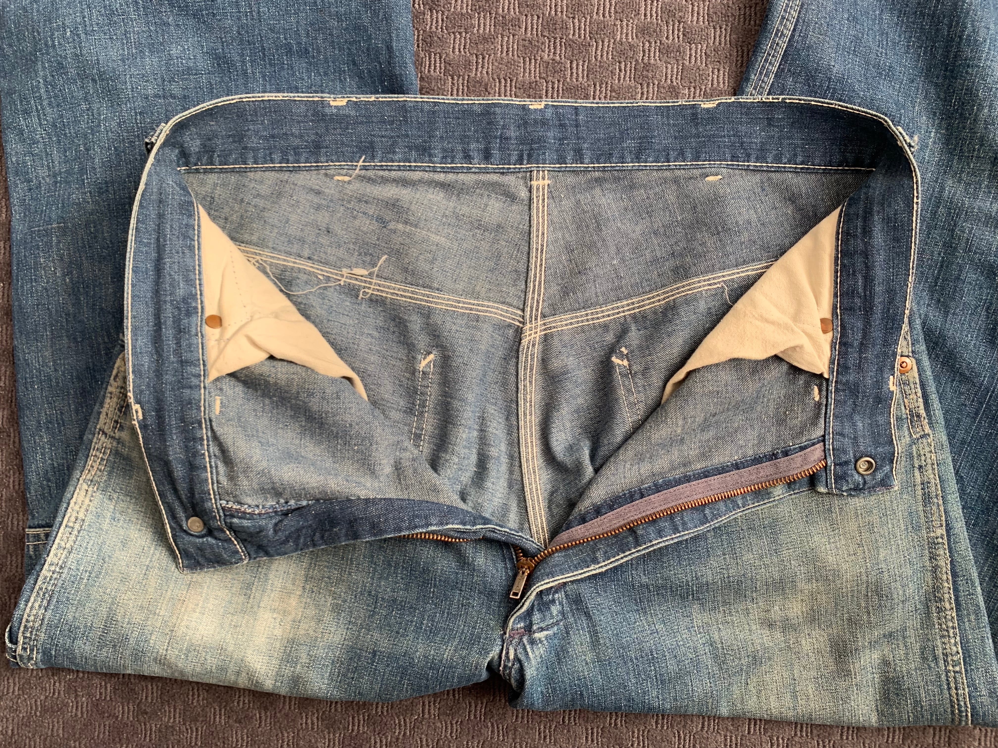 リペア箇所があり、ダメージや汚れがありますが、すべてにおいて、この個体の良さであり、価格も考慮して、とにかく一本持っておきたいヴィンテージデニムパンツとなります。