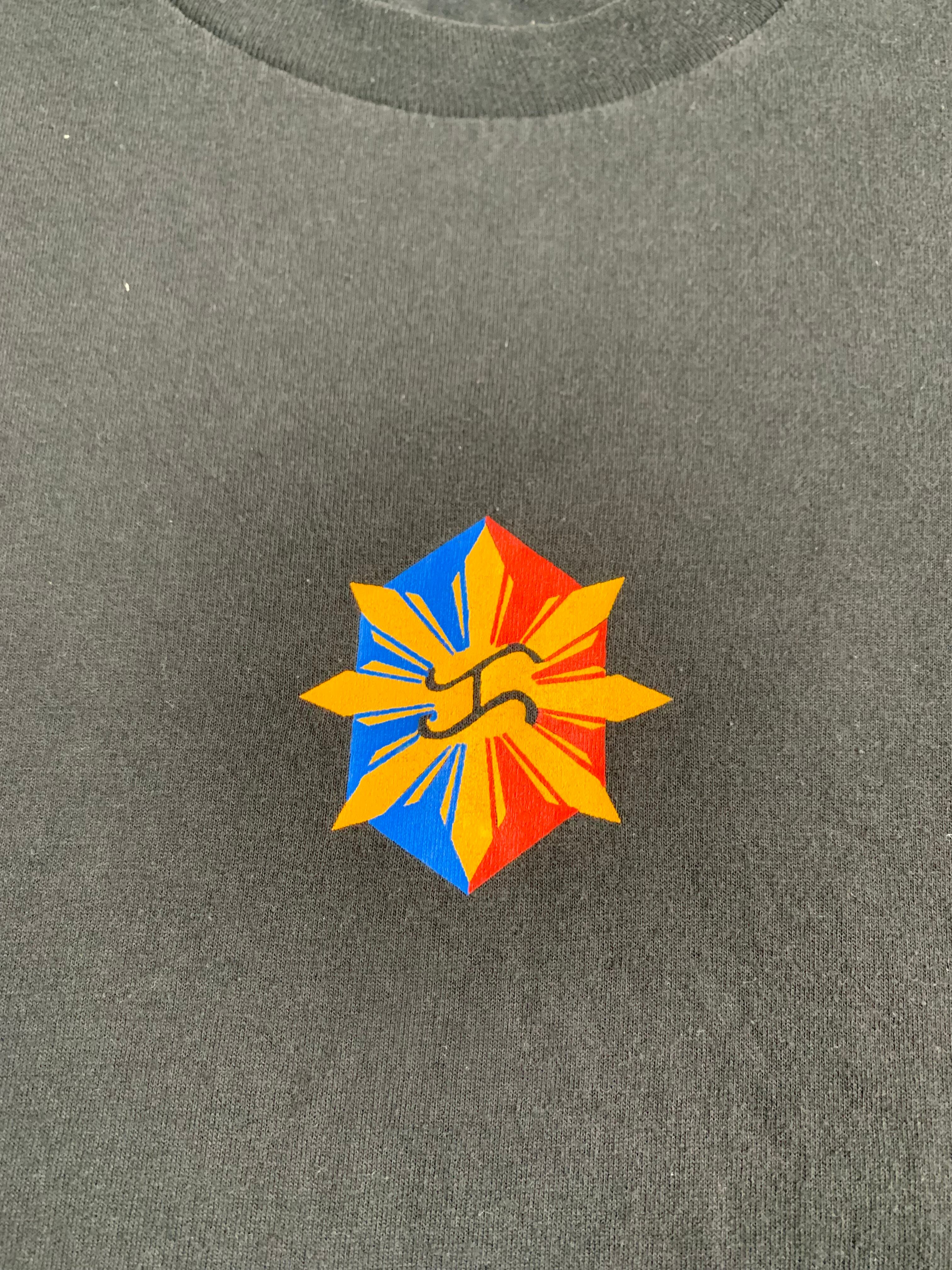 アメ製シングルステッチのブラックボディに、フェードがかった生地、プリントのデザインが、シンプルかつ雰囲気抜群の個体です。