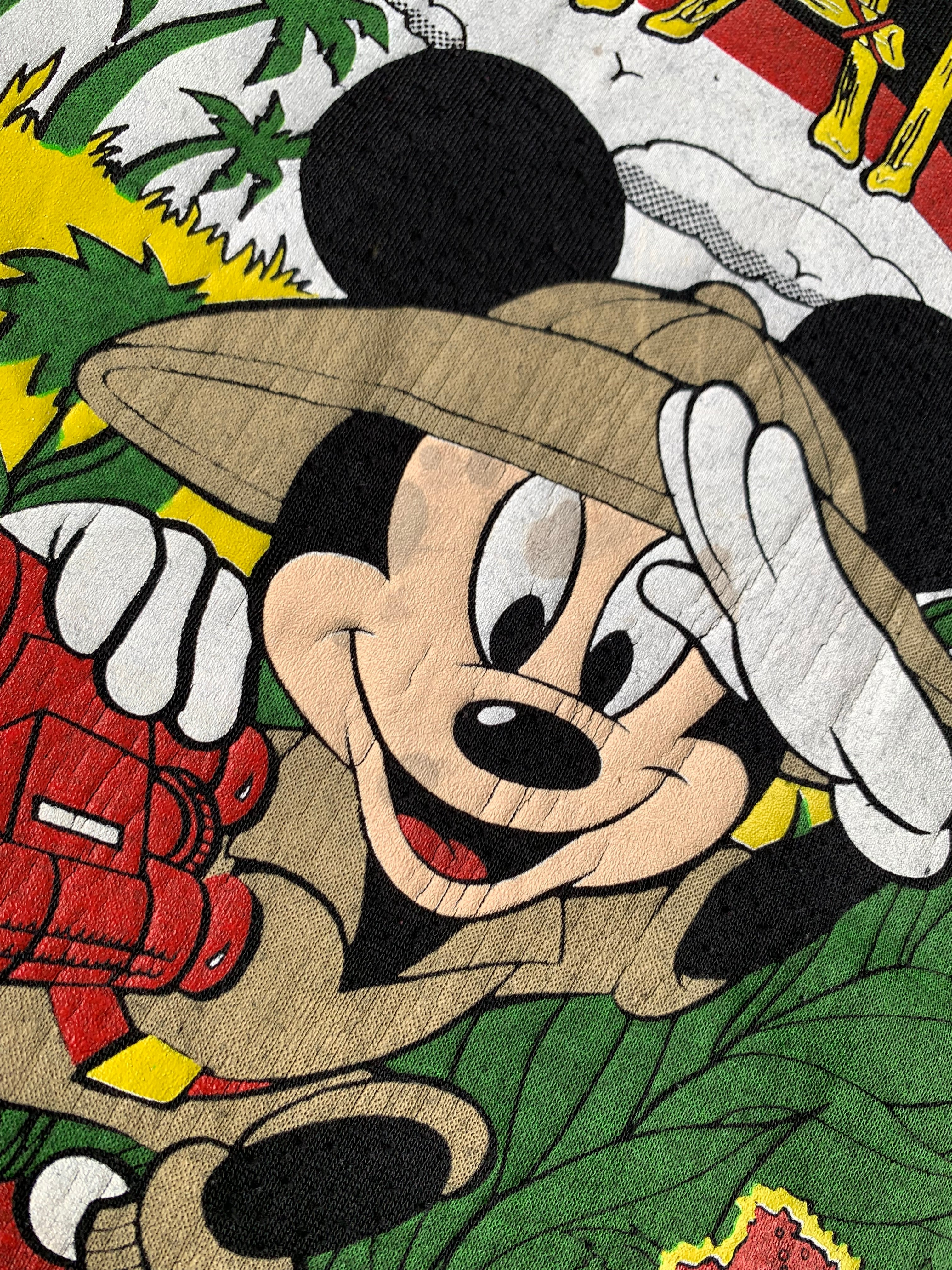 状態は、生地に褪色があること、薄くなっていること、ミッキーマウスのプリントに少し汚れがあります。