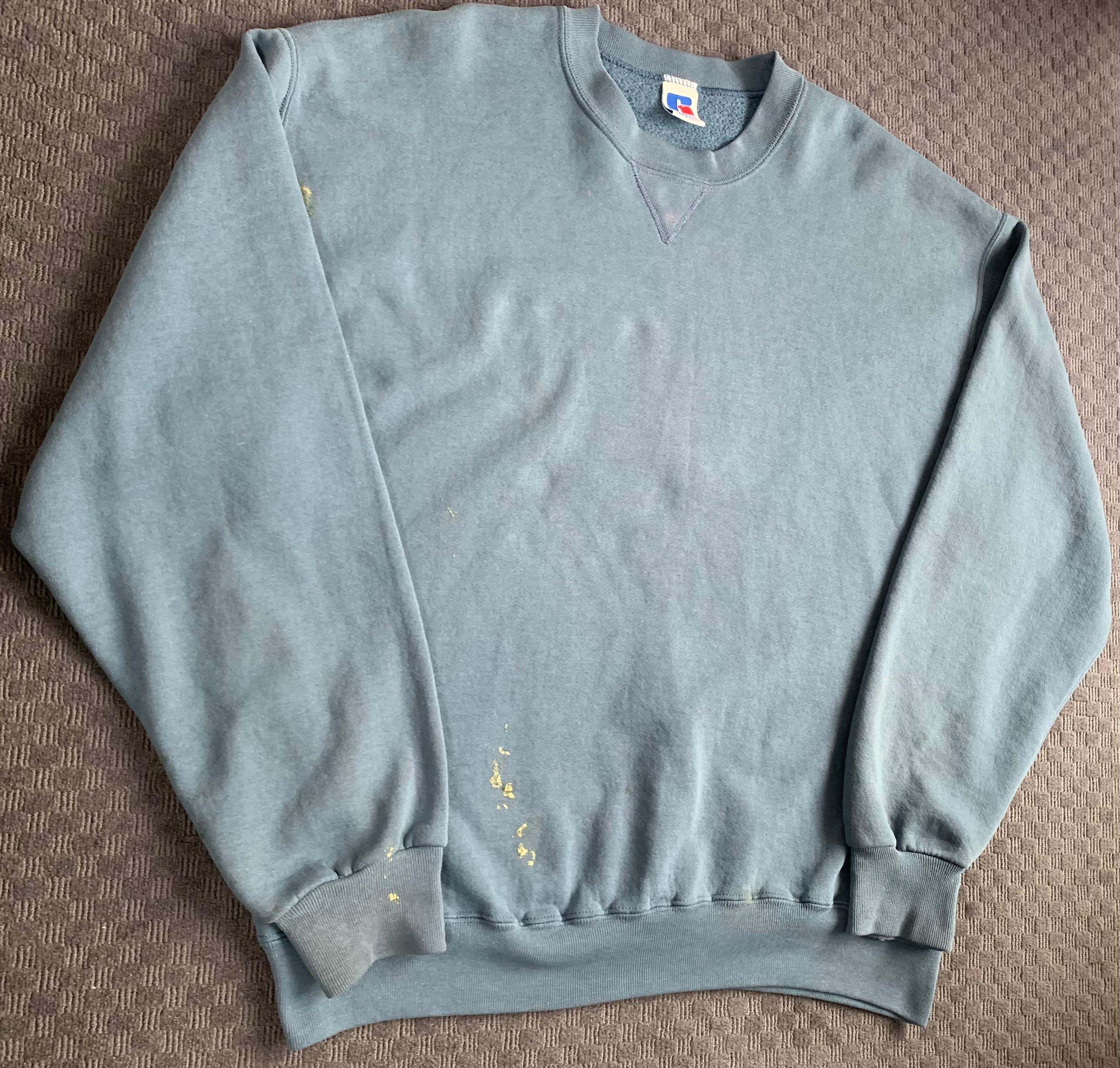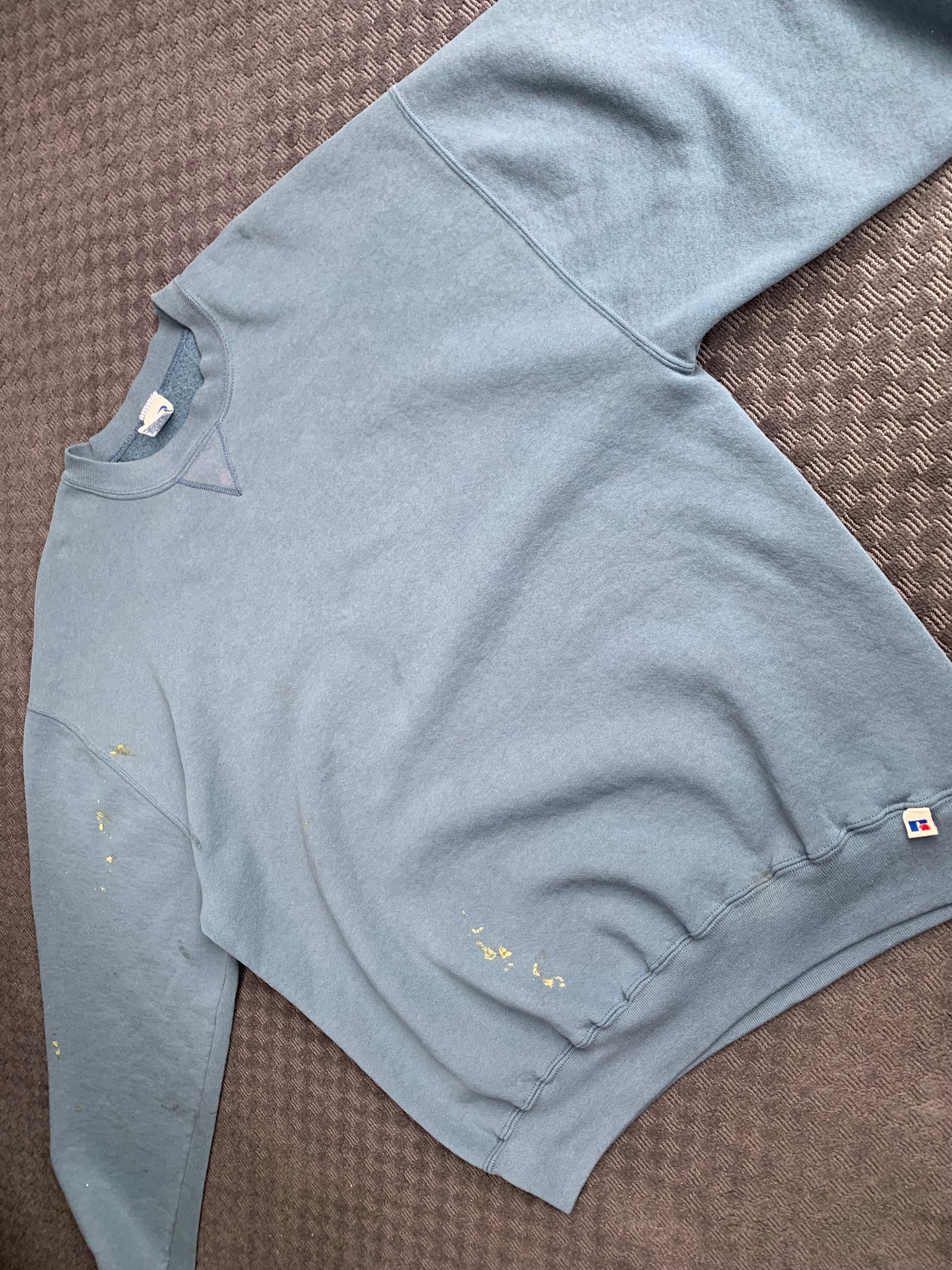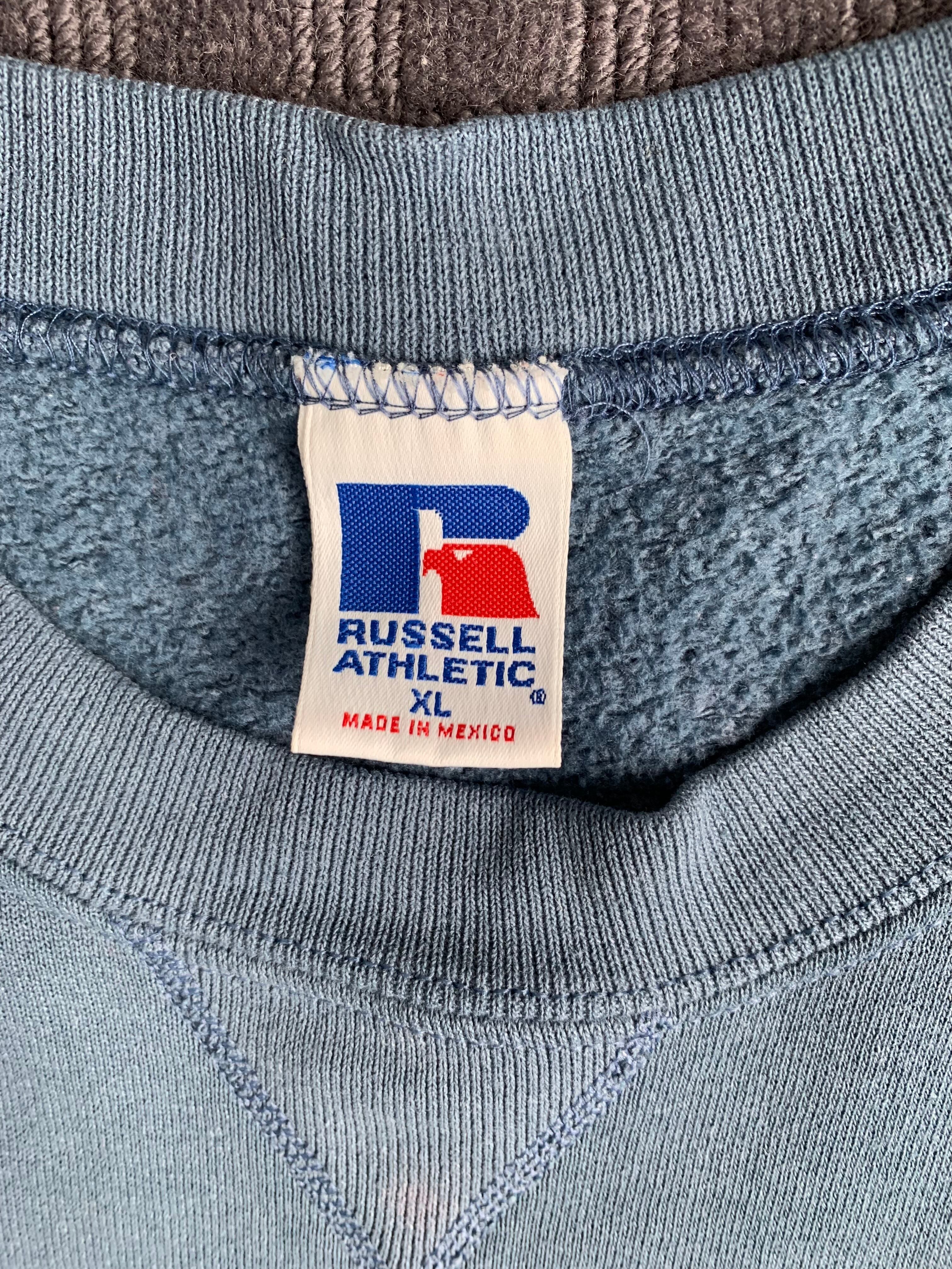 90s“RUSSELL ATHLETIC” sweatshirt blank color navy fade paint