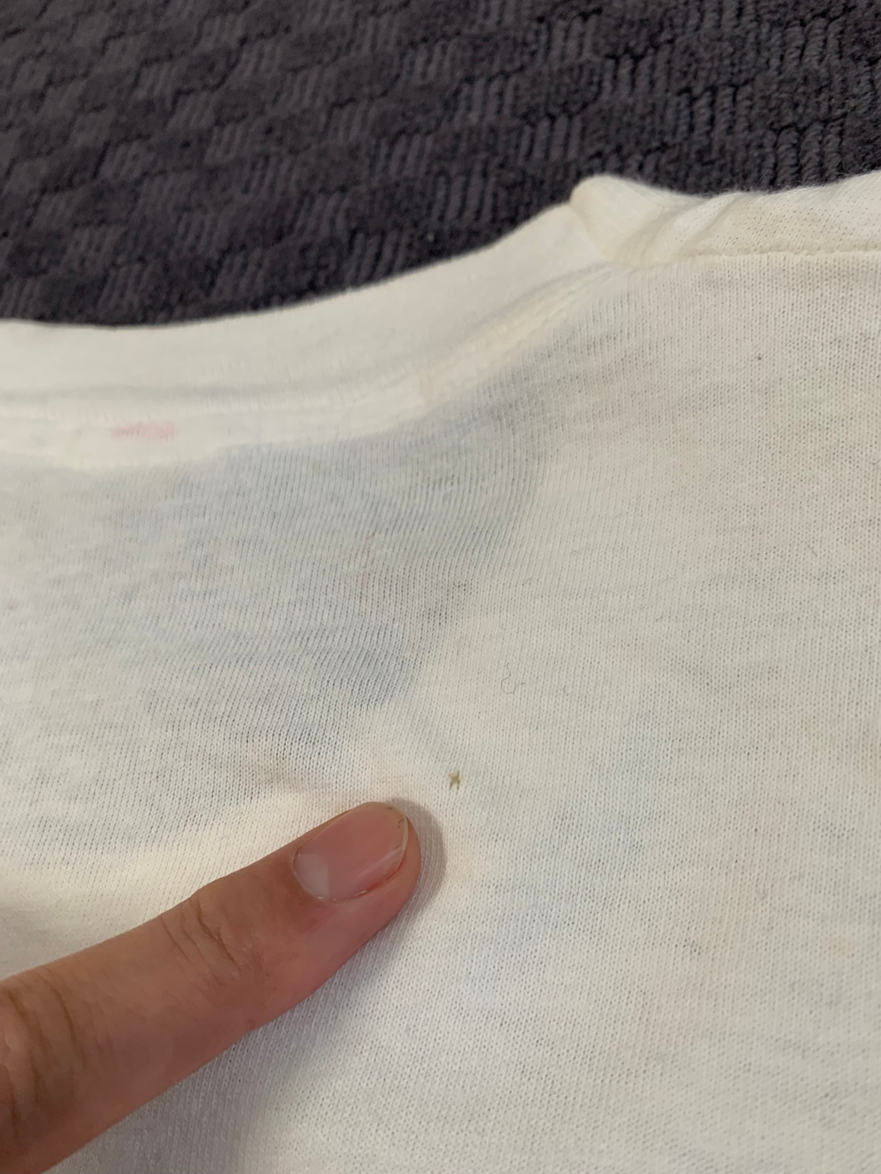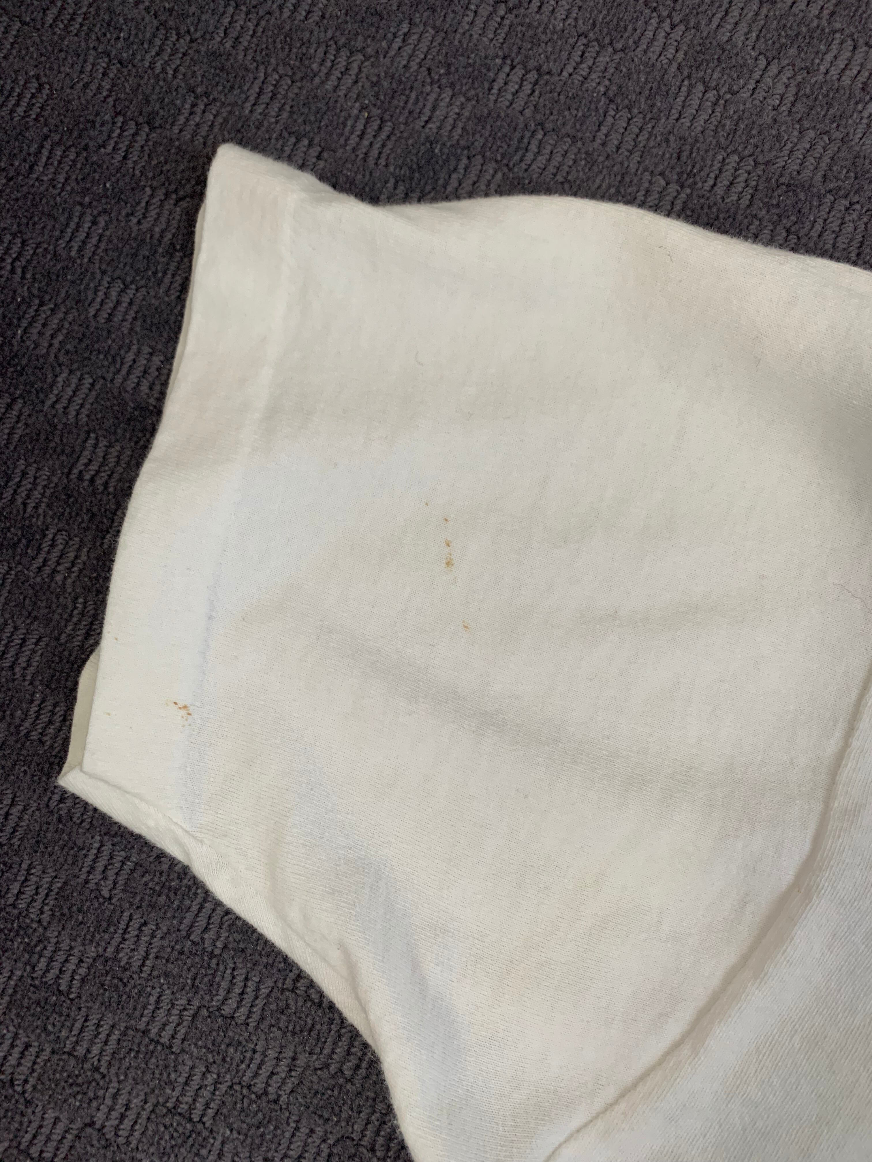 状態は少しシミなどの汚れがありますが、そこまで目立たなく、古着らしいTシャツとなります。