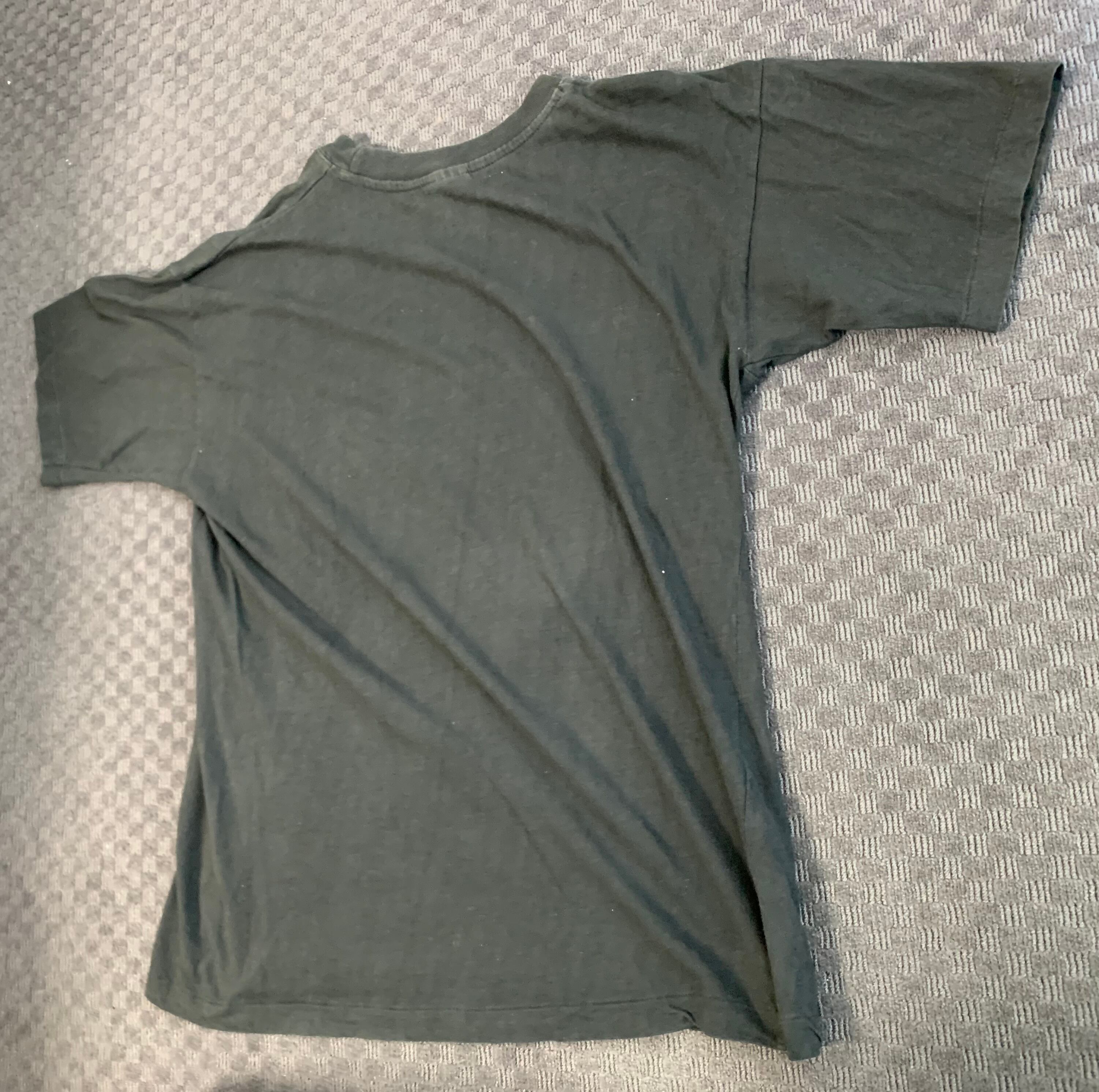 状態は、使用感と褪色は多少あるものの、破れや汚れはないです。縮みから生地がよじれています。着る分には支障はありません。