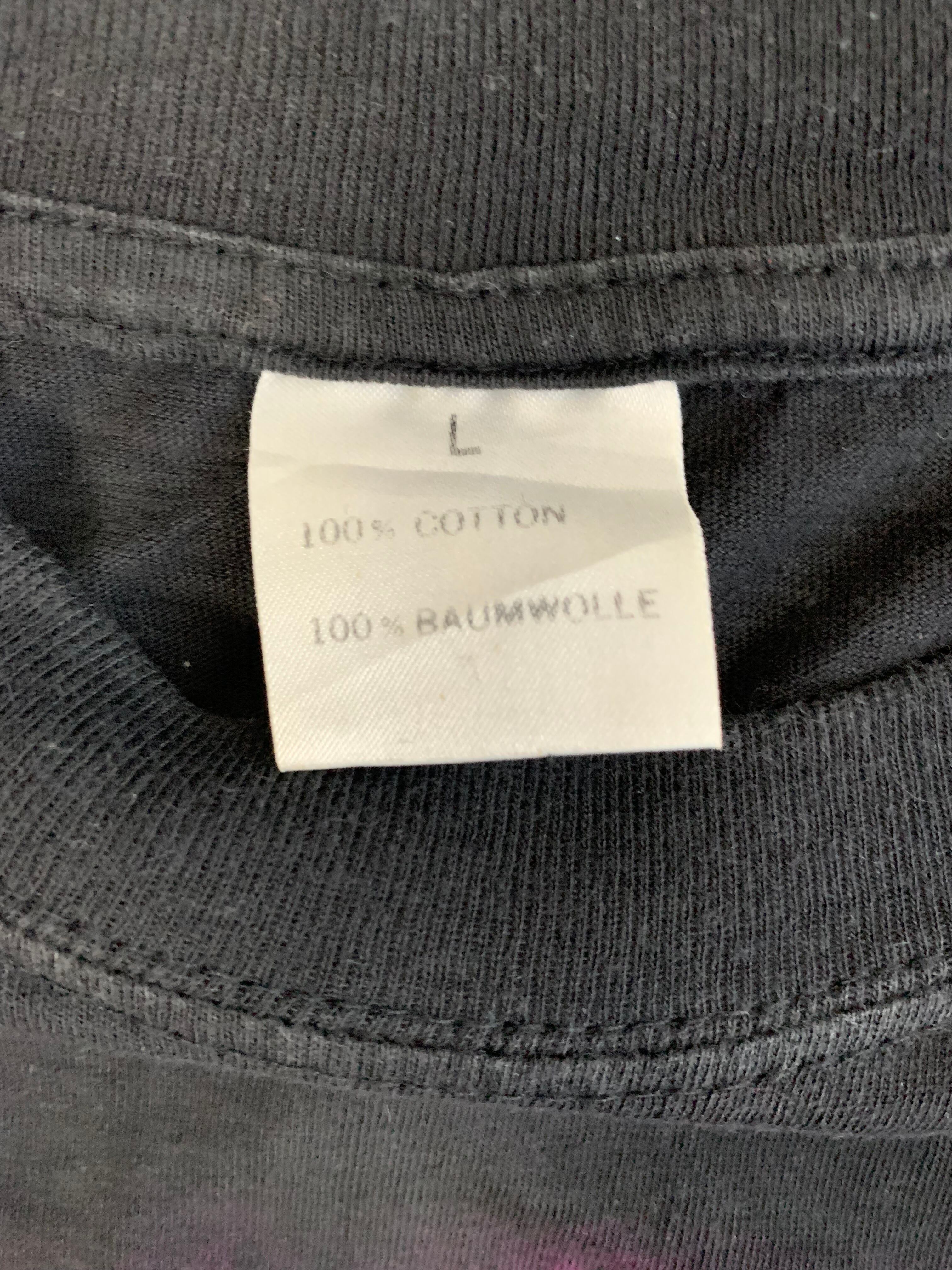 タグにBAUMWOLLEとドイツ語で綿の表記があるので、ドイツやユーロ製のTシャツかなと思います。
